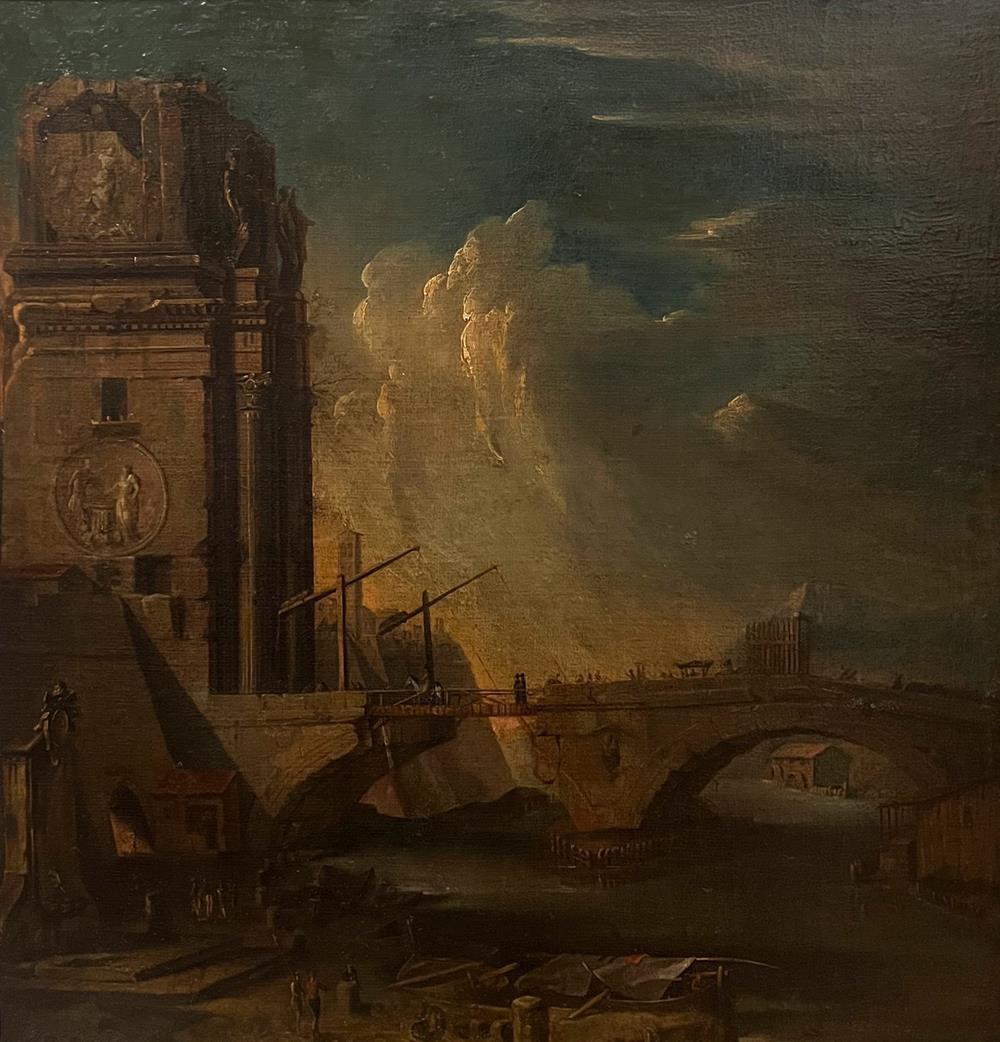Charles Francois Lacroix (attribuito a) La costruzione del ponte