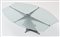 tavolo di gusto post-modernista con struttura in metallo e ripiano in vetro con motivo acidato al lato inferiore