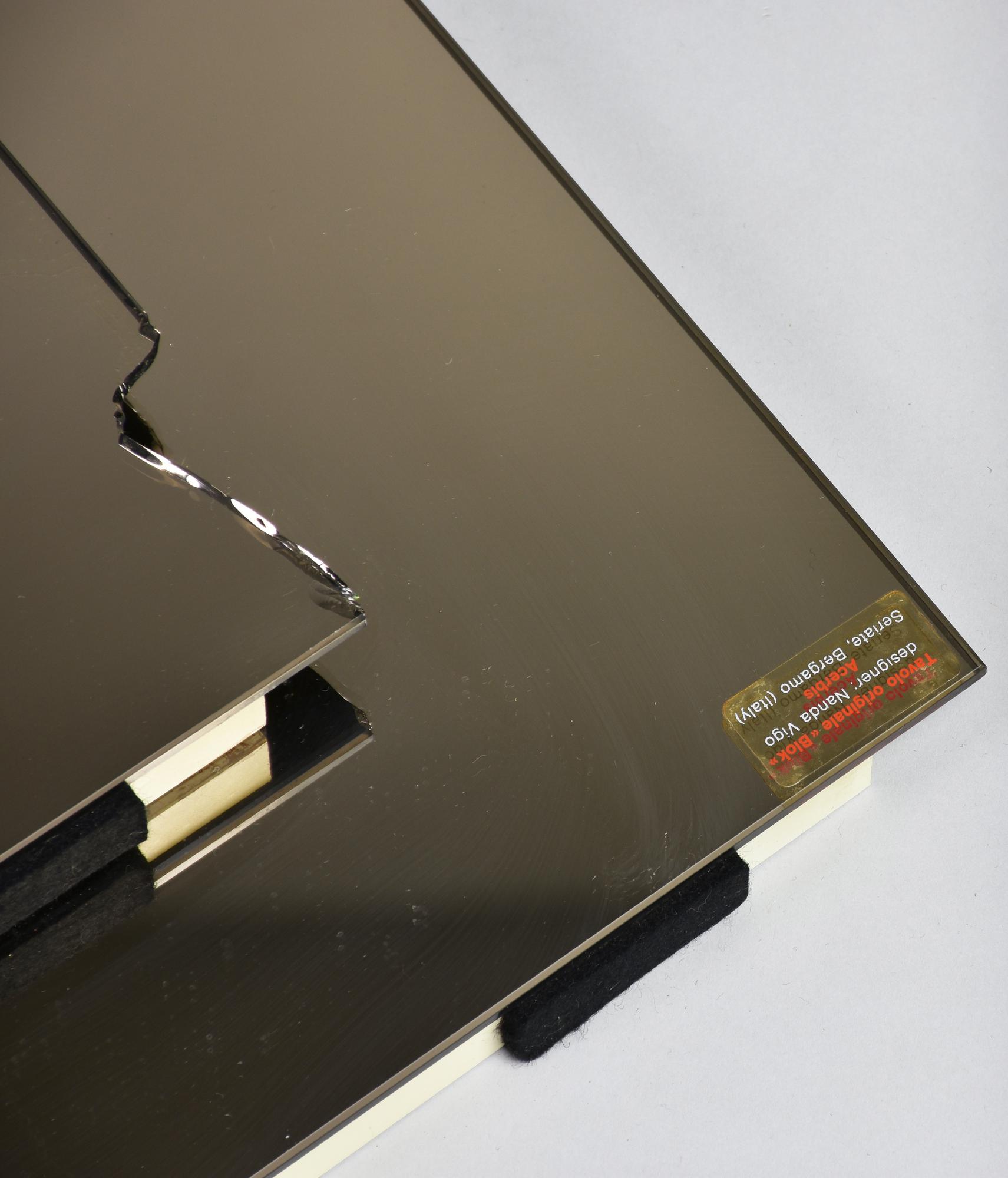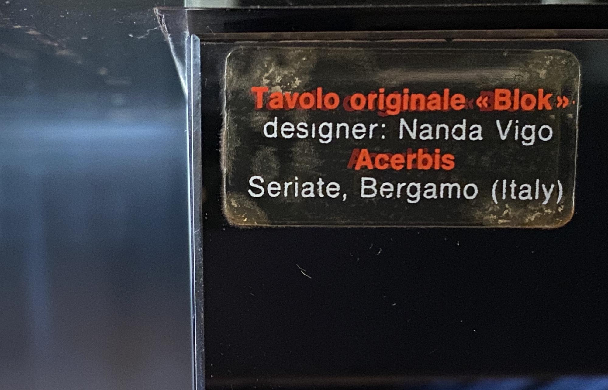 Vigo Nanda BLOK PER ACERBIS, 1972 tavolo con struttura in metallo bronzato e...