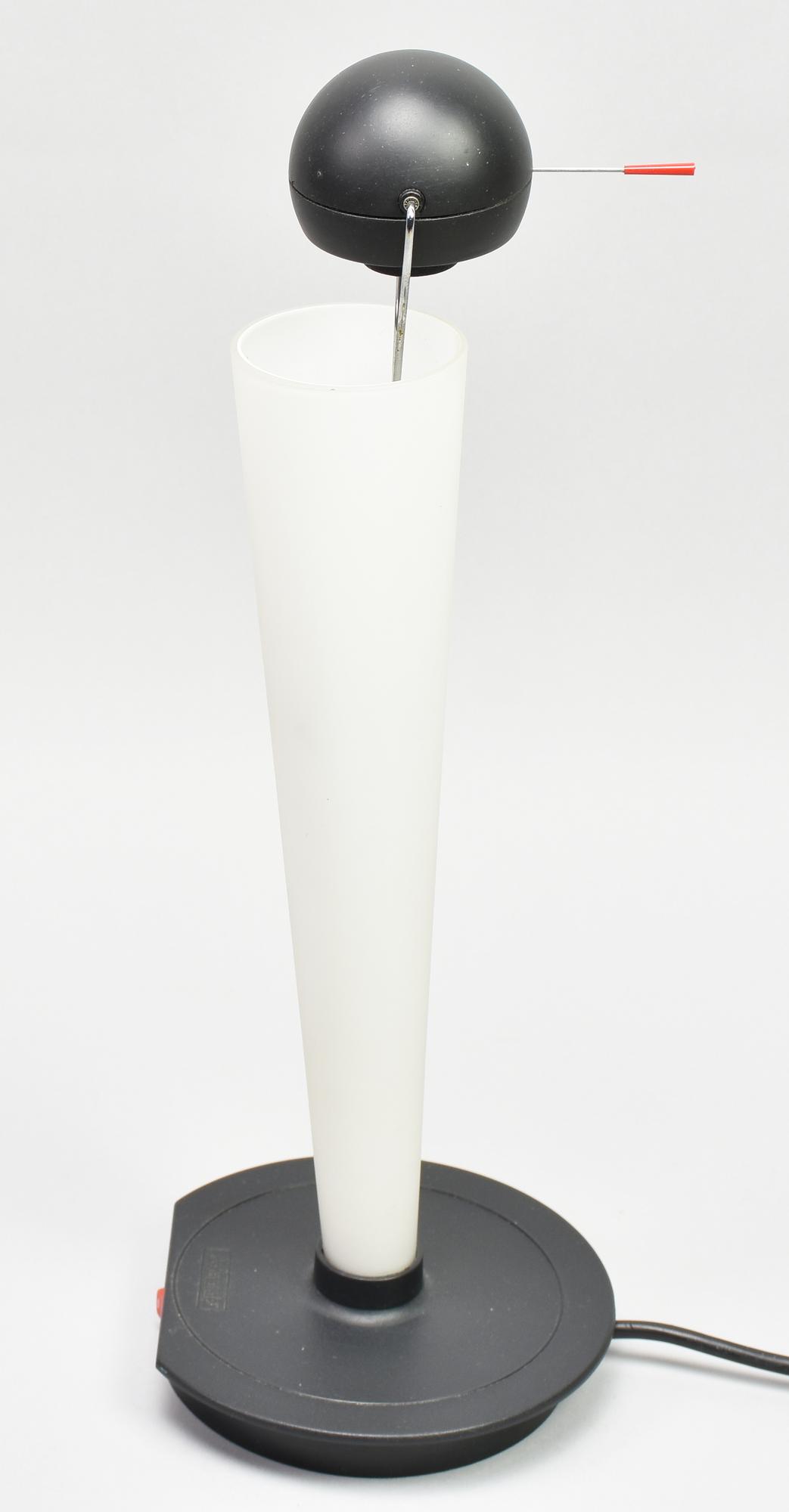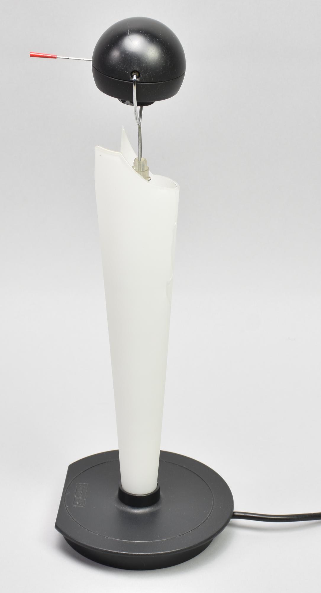 lotto composto da due lampade da tavolo in plastica e vetro lattimo
