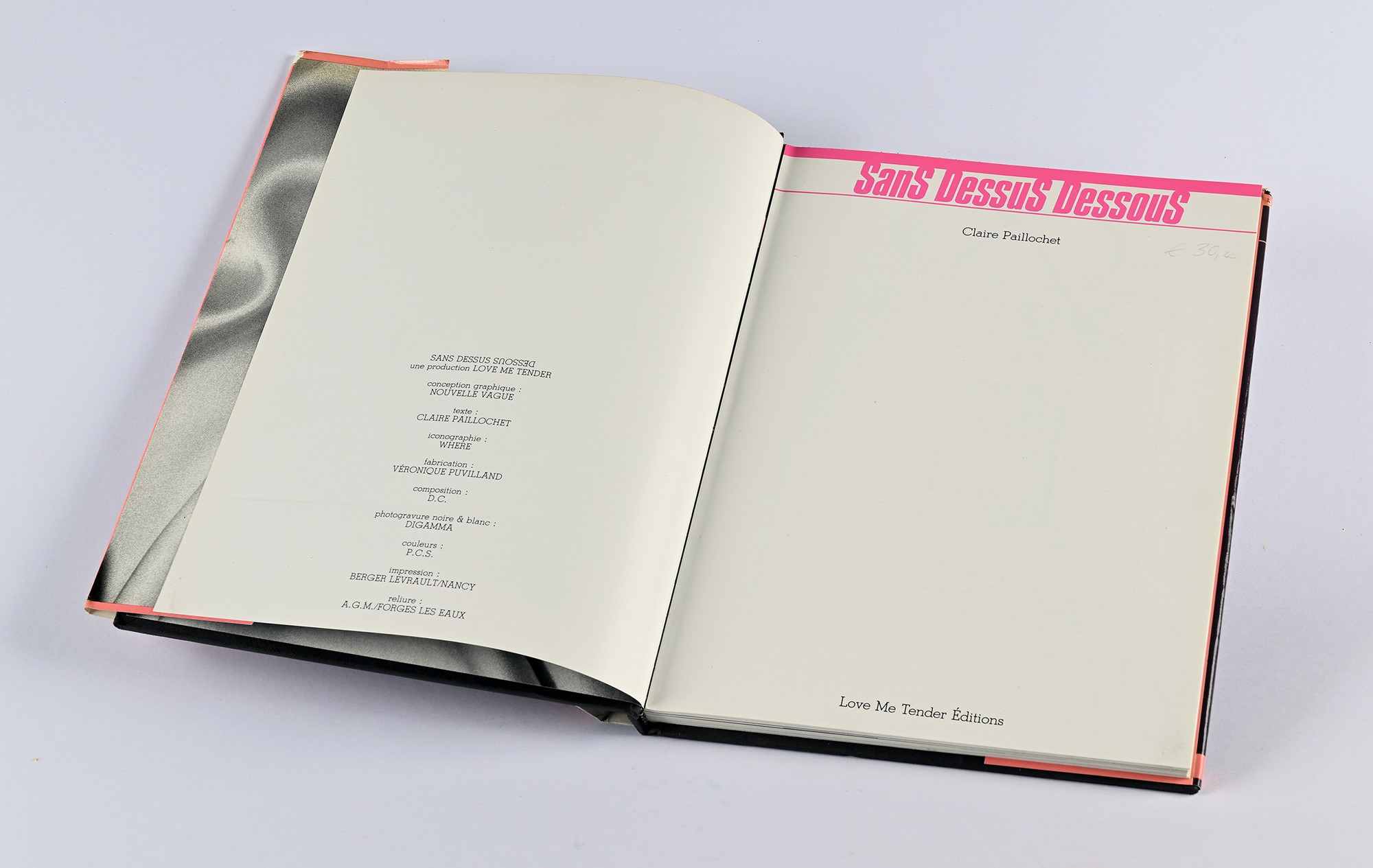 PAILLOCHET, CLAIRE - SANS DESSUS DESSOUS. HISTOIRE DÉLIRANTE DE LA LINGERIE SEXY 1 vol. Leg. ed. con sovracopertina, pp. 125, mm 315x235. Volume illustrato. Prima edizione, esemplare con piccoli strappi in sovracop. Testo a stampa 1983, s.l., Love Me Tender mm 315x235