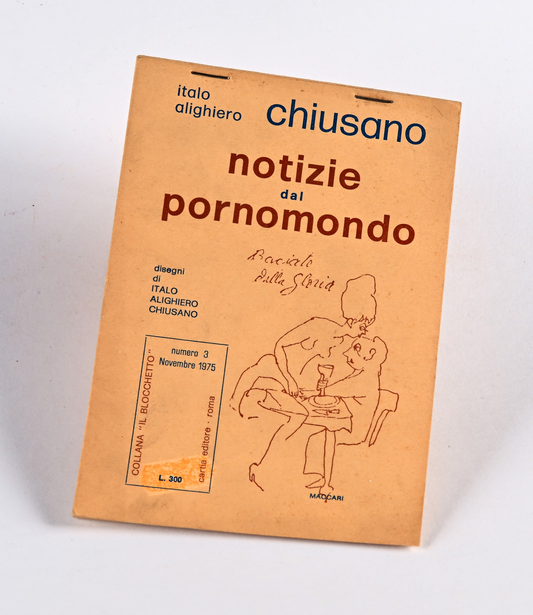 CHIUSANO, ITALO ALIGHIERO - NOTIZIE DAL PORNOMONDO 1 vol. mm 170x120, pp. nn. Brossura editoriale spillata, albo verticale con illustrazioni fuori testo. Testo a stampa 1975, Roma, Cartia mm 170x120