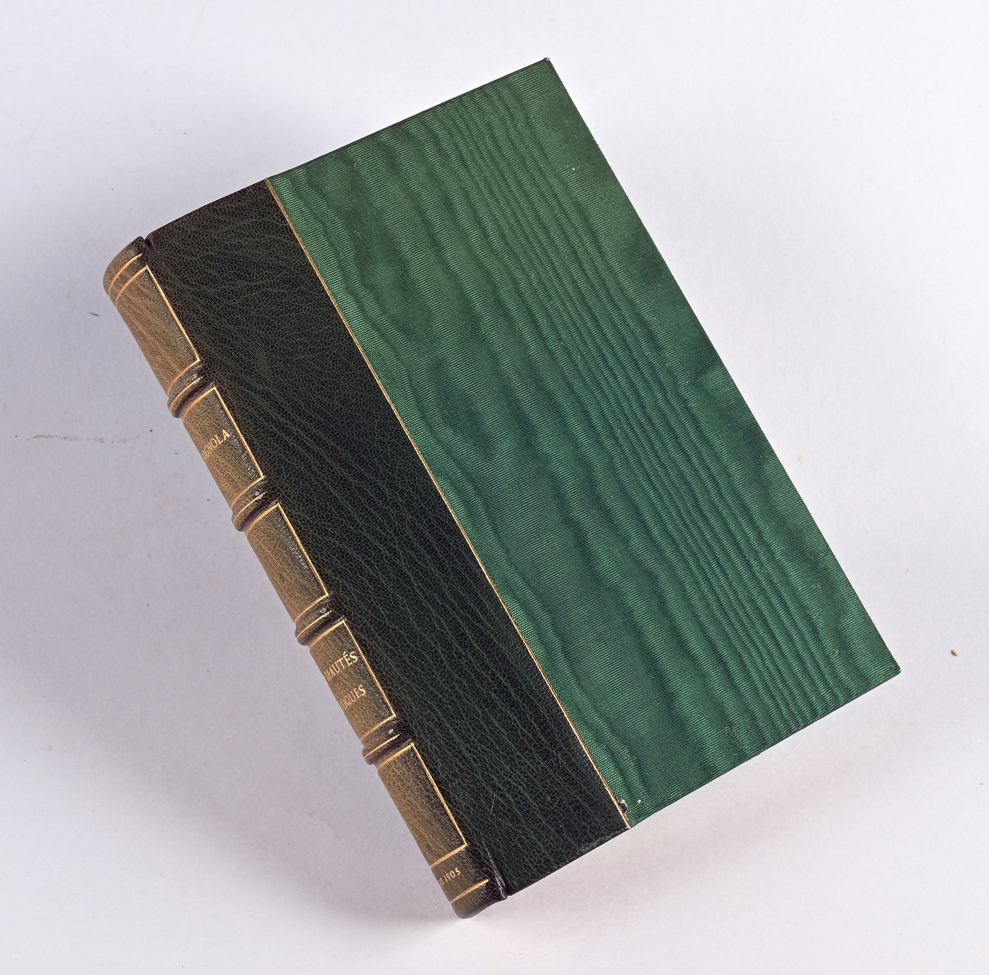 VIGNOLA, AMÉDÉE - LES BEAUTÉS ANTIQUES 1 vol. mm 195x135, p. 303+12 tav. ill. f.t. Rilegatura artistica in mezzo marocchino pregiato con piatti in seta, dorso con titoli in oro e 4 nervature, risg. marm. Testo a stampa 1905, Paris, Albert Méricant mm 195x135