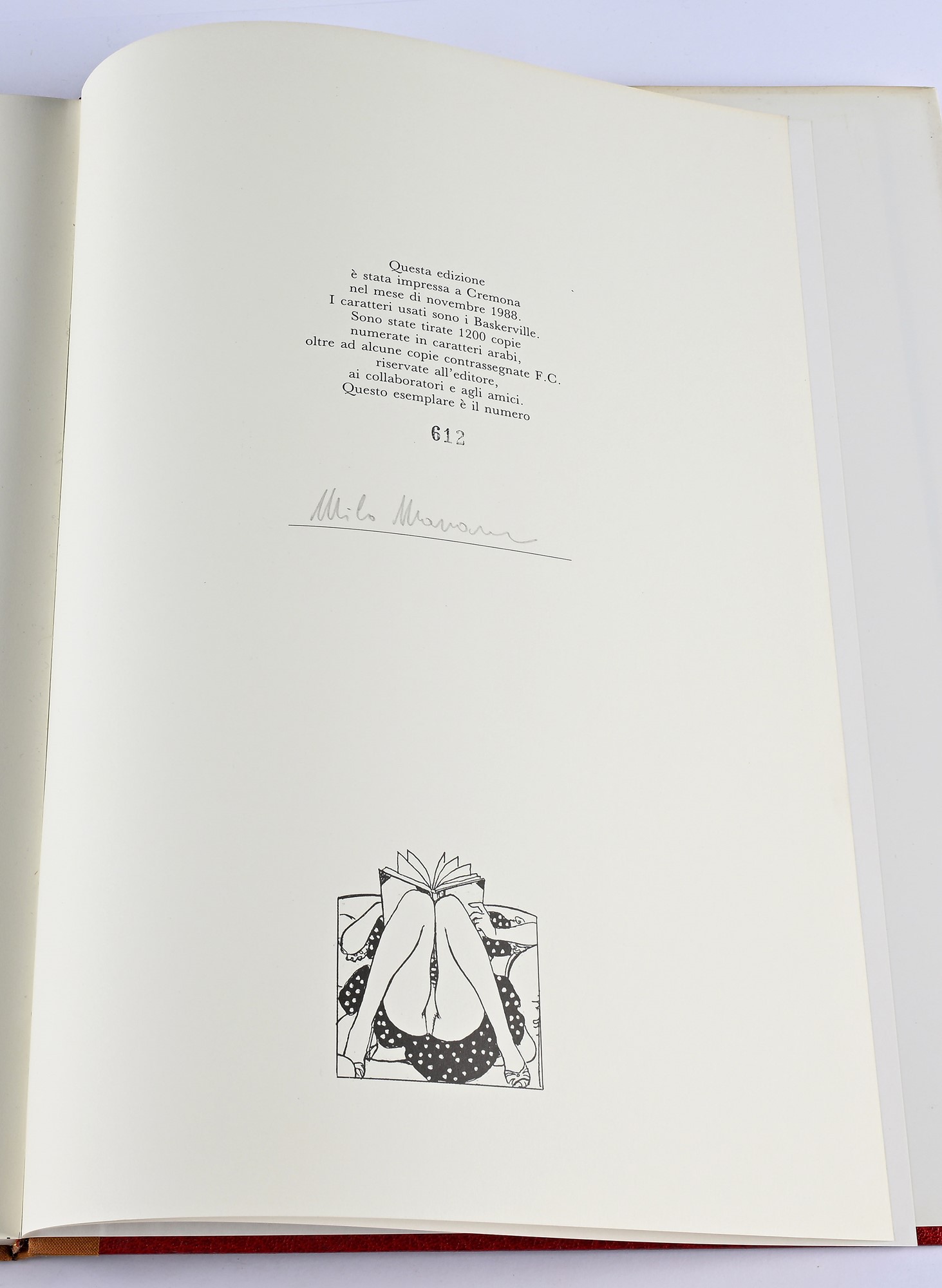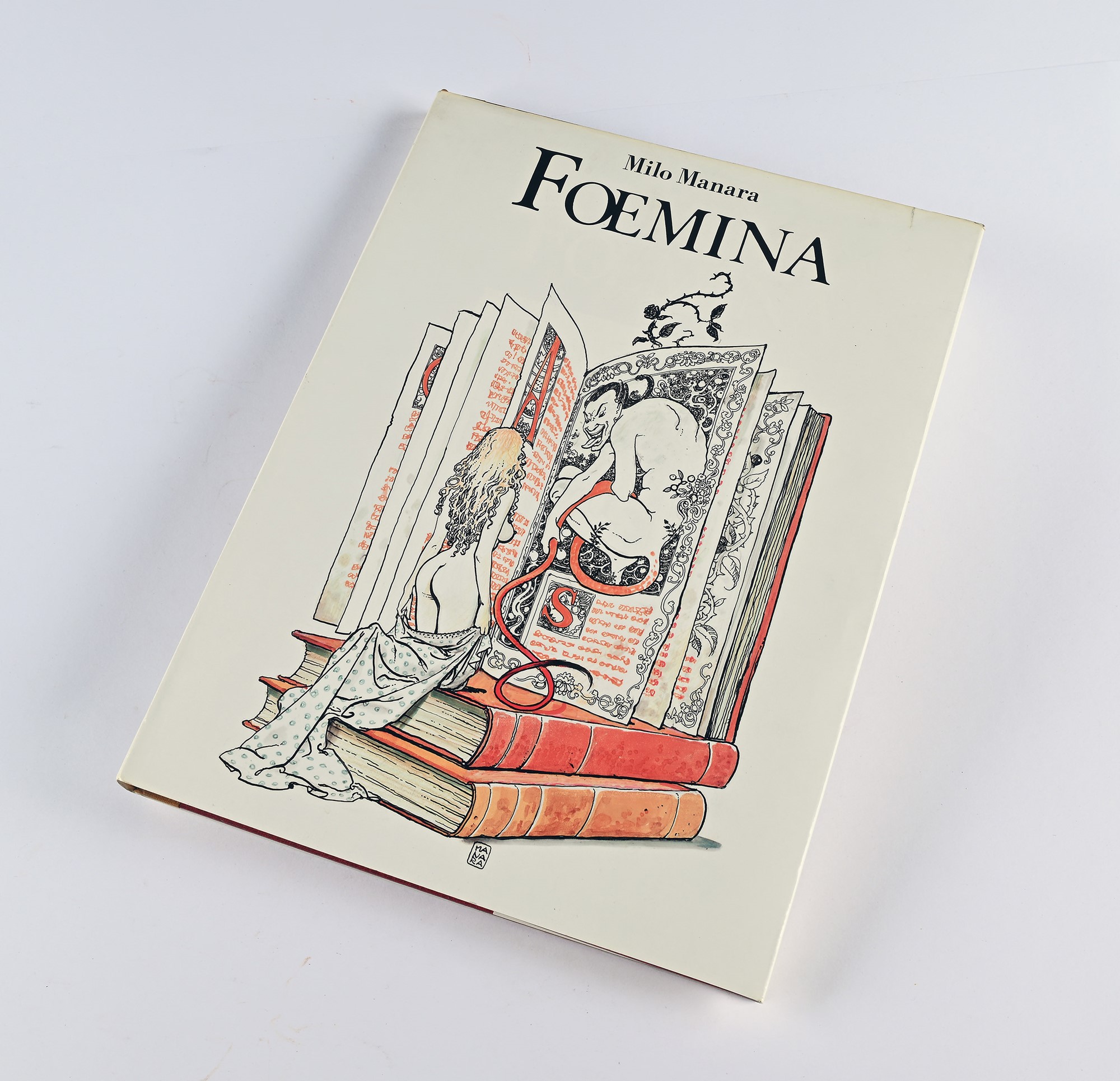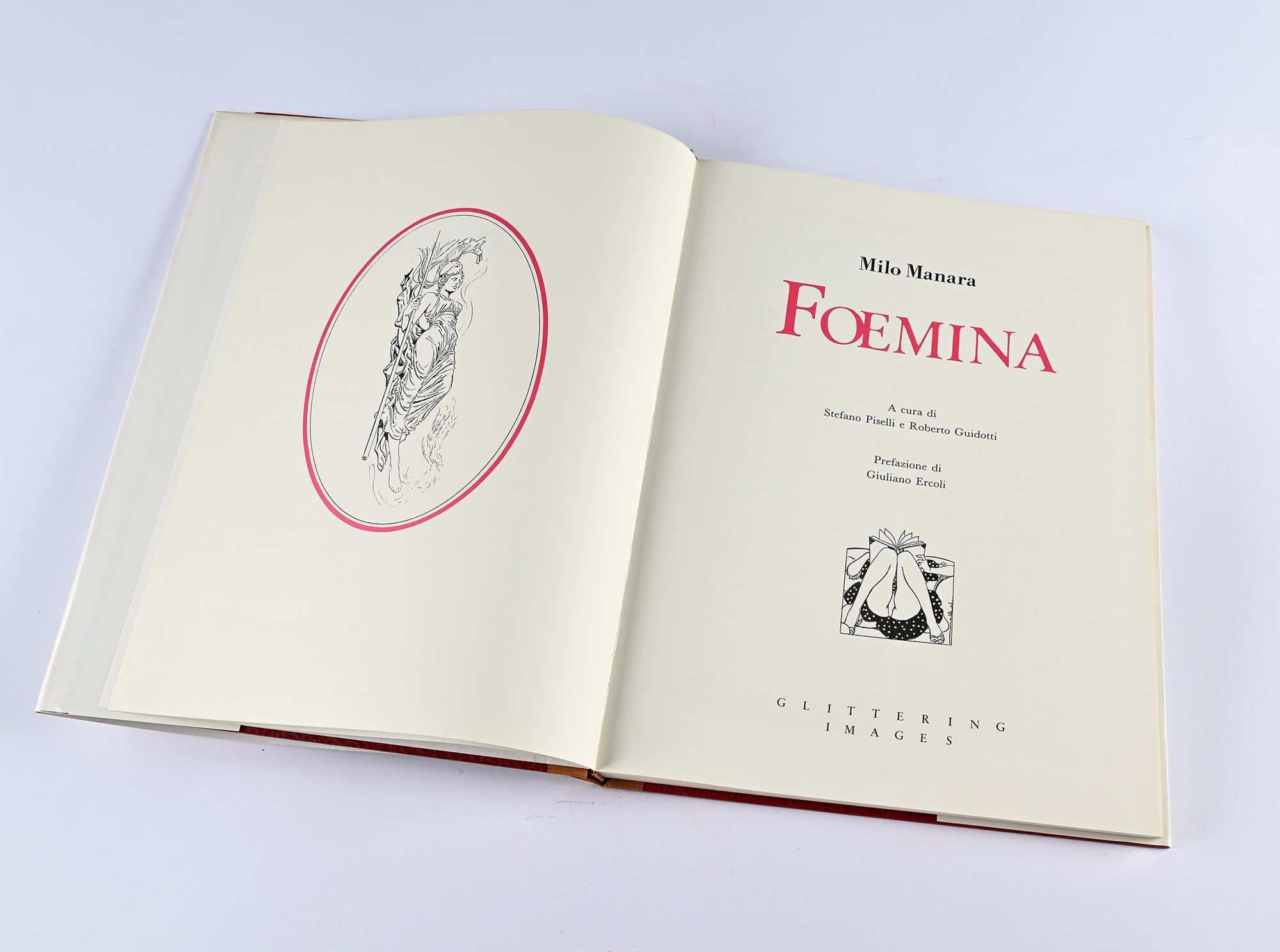 MANARA, MILO - FOEMINA 1 vol. mm 400x300, p. 157, legatura editoriale in mezza tela e similpelle, titoli e fregio in oro in oro al dorso, titoli con illustrazione al piatto, sovracopertina. Edizione numerata e firmata a matita dall’autore, es. 612/1200, a cura di Stefano Piselli e Roberto Guidotti ; prefazione di Giuliano Ercoli. Volume illustrato a colori, grande formato. Testo a stampa 1988, Firenze, Glittering Images edizioni d’essai mm 400x300