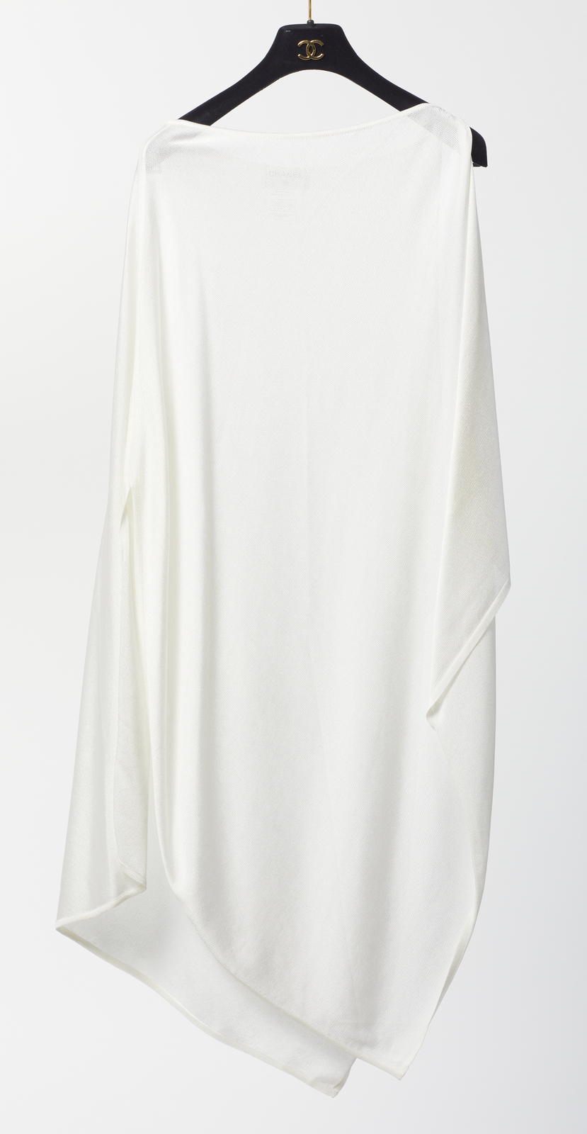 CHANEL Abito in jersey di seta. Seta. . Abito caftano Chanel vintage in jersey di seta bianco, etichetta Chanel presente, etichetta tessile, taglia FR 40 (IT 44), ampia vestibilità.