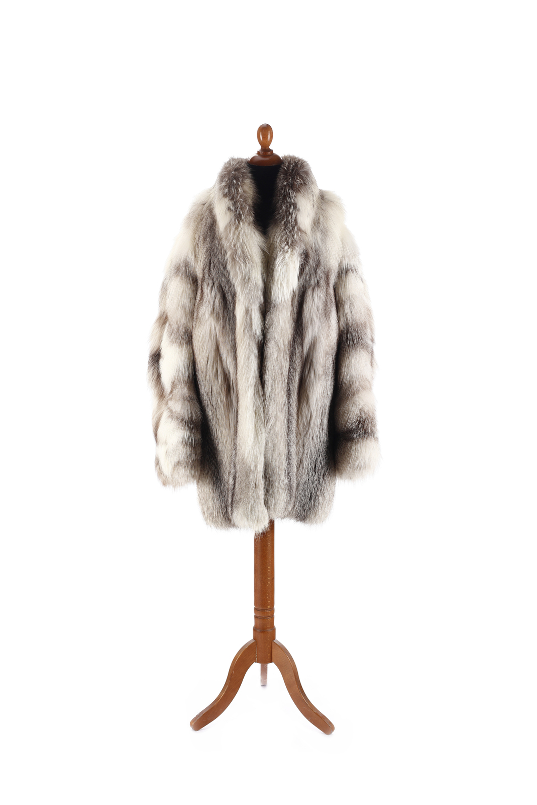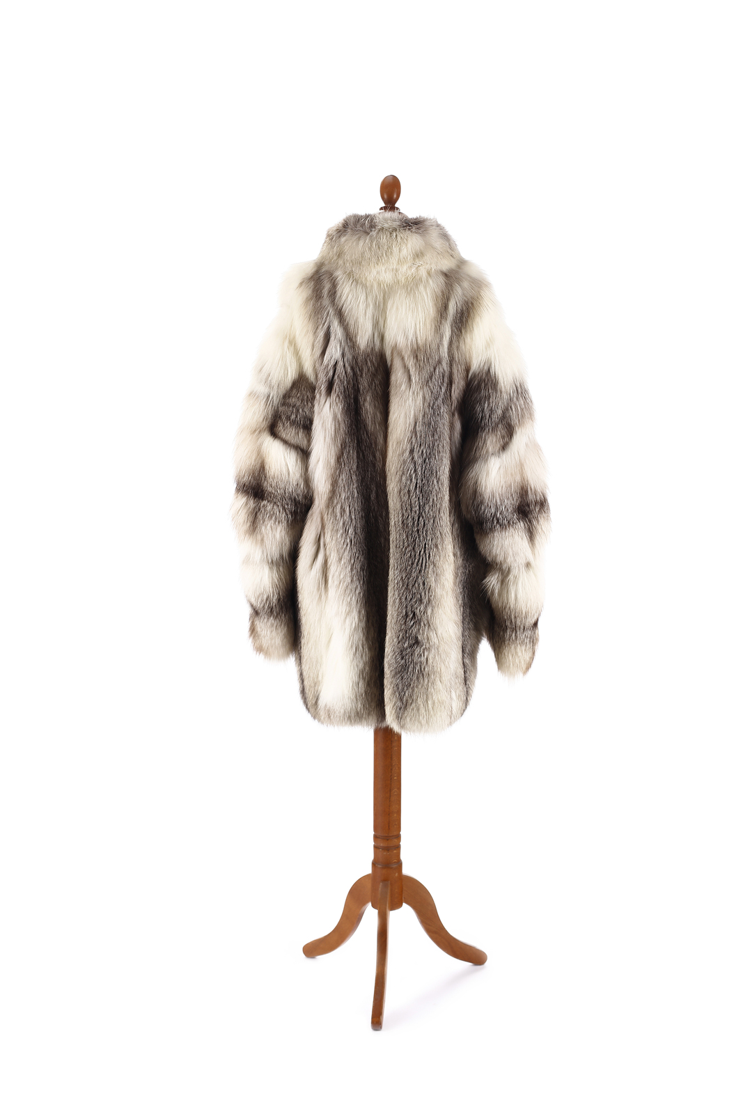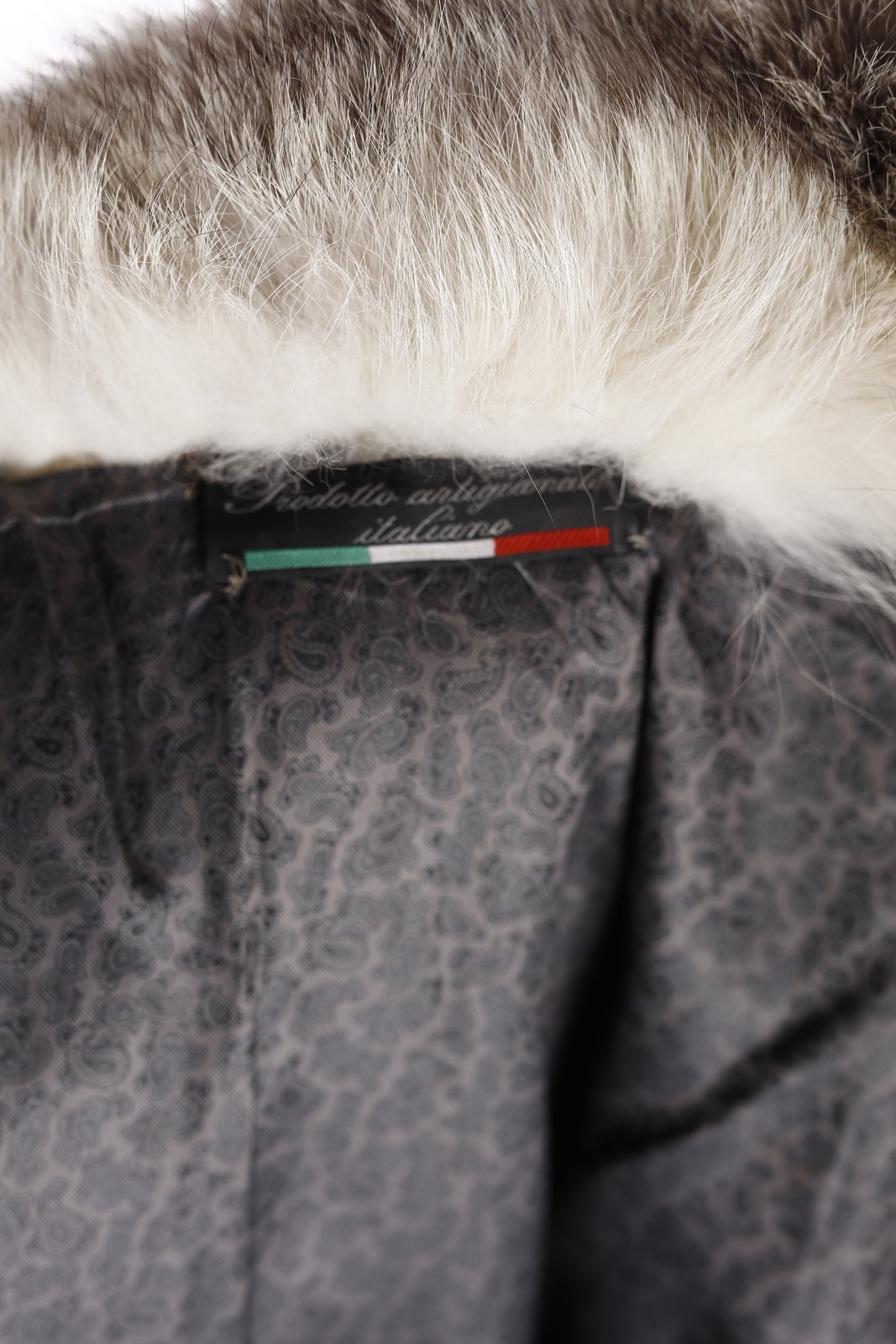 AUTORE NON IDENTIFICATO Pelliccia artigianale in volpe. 1988. Pelliccia. Cm 143,00 x 88,00. Pelliccia in volpe della Groenlandia.Fodera grigia a motivi chachemire iniziali C.E.