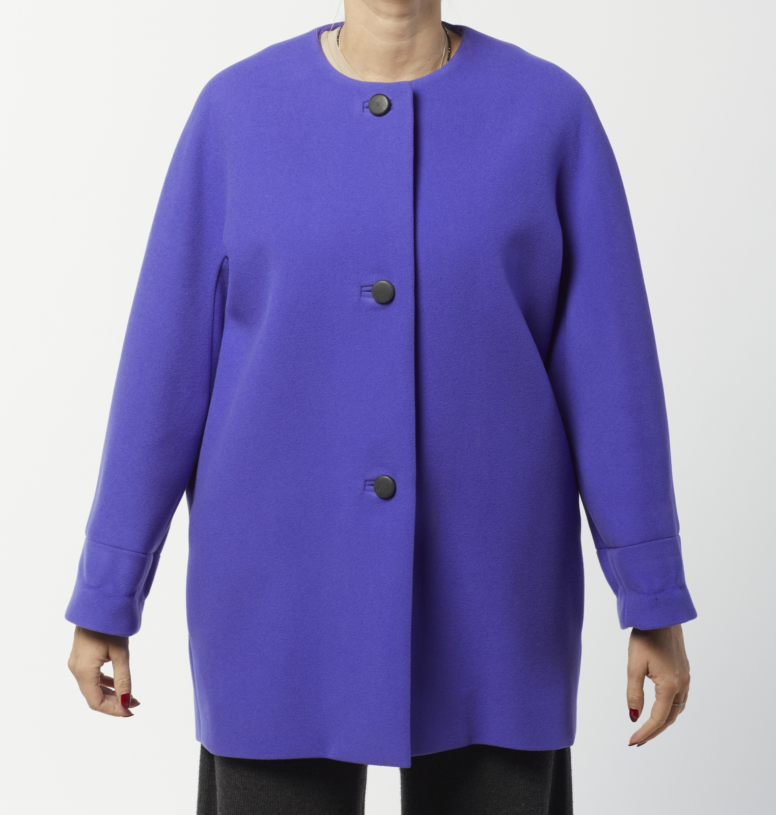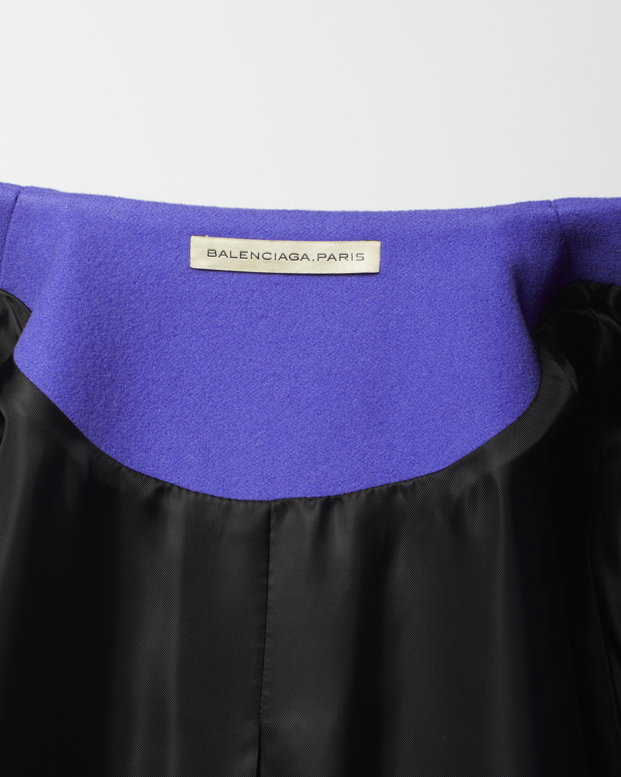 BALENCIAGA Spolverino blu elettrico.Spolverino Balenciaga vintage blu elettrico, tre bottoni neri a contrasto, fodera nera, linea ad uovo, etichetta Balenciaga Paris presente. Linea senza spalle vestibilità oversize. La modella indossa generalmente una taglia 40IT ed è ALTA 170 CM.