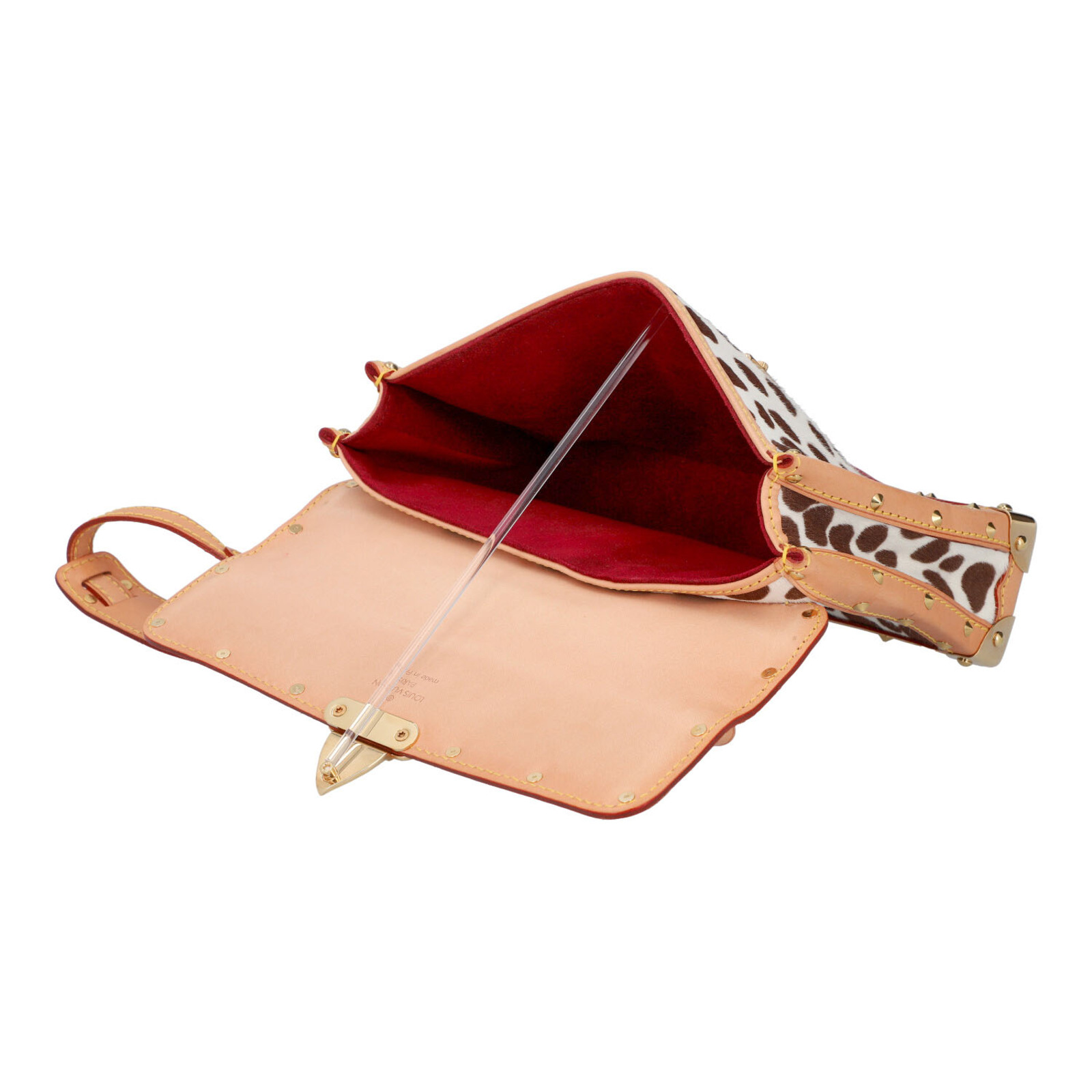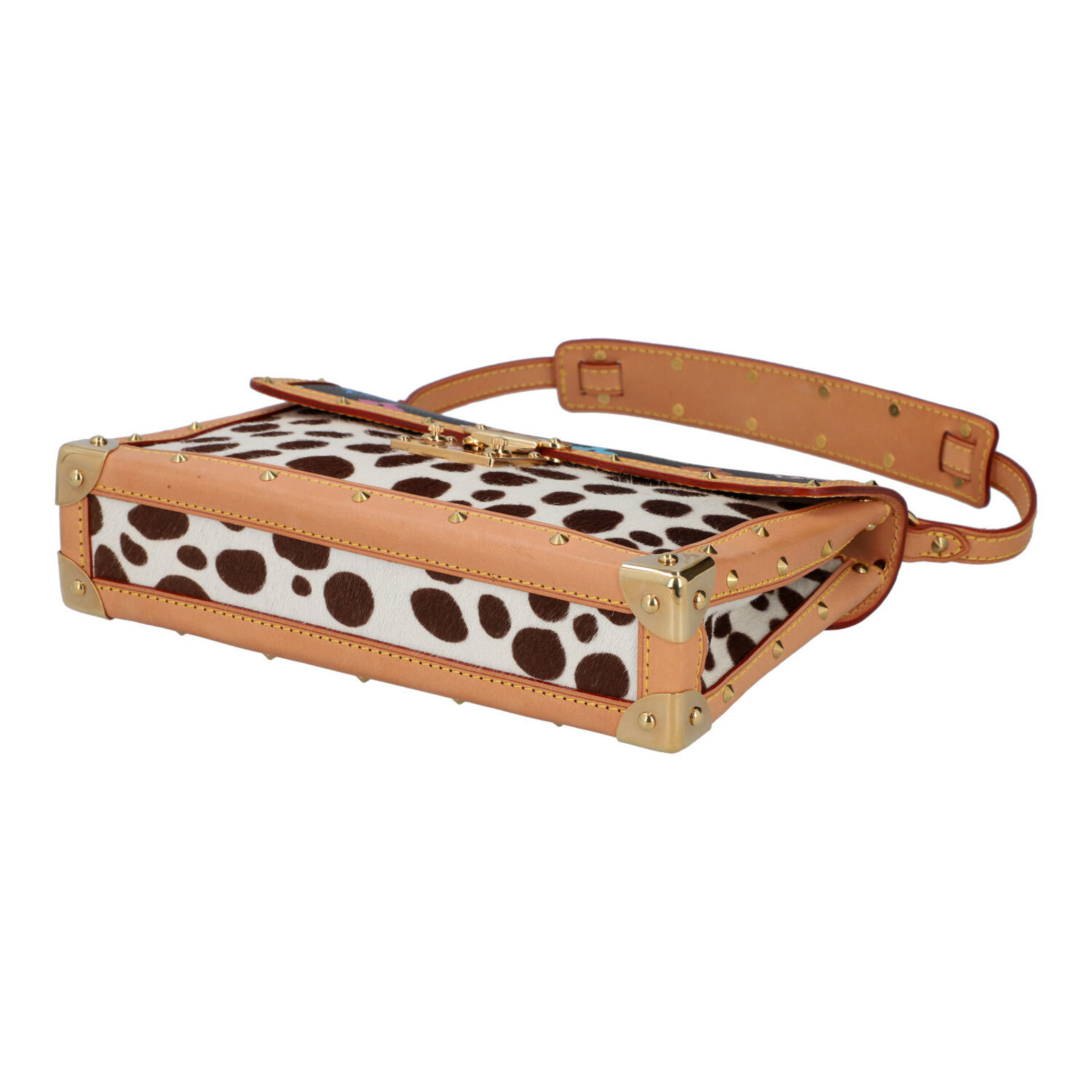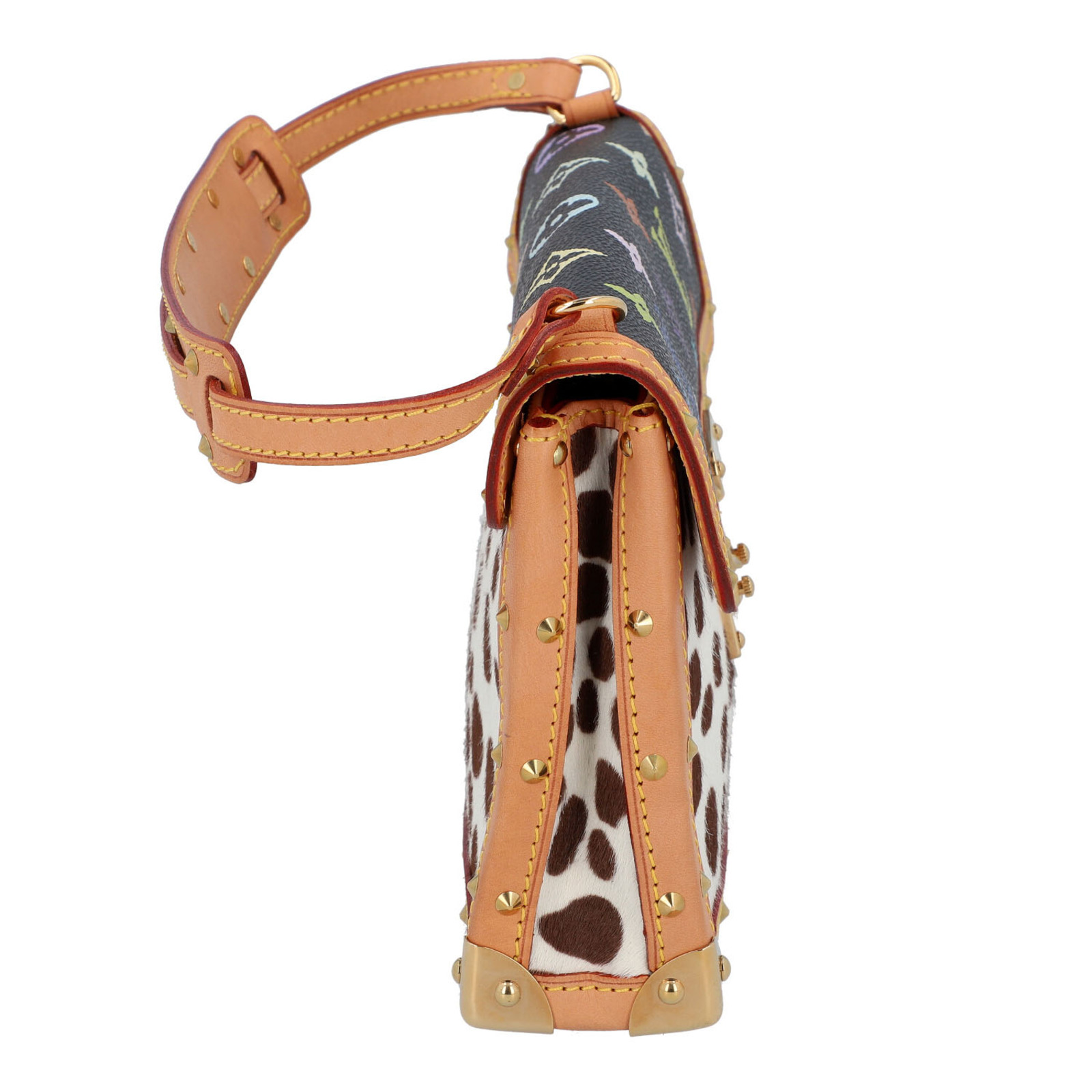 VUITTON LOUIS Borsa MINI DALMATIAN - TAKASHI MURAKAMI. 2003. Cavallino e pelle. Cm 22,50 x 14,50 x 5,50. Borsa Mini Dalmatian collaborazione con Takashi Murakami- Louis Vuitton. Monogram multicolor fondo nero in cavallino maculato bianco e nero e vacchetta naturale. Interno in alcantara rossa. Codice: TH0093 anno 2003, edizione limitata. Made in France. RARA. Condizioni eccellenti.