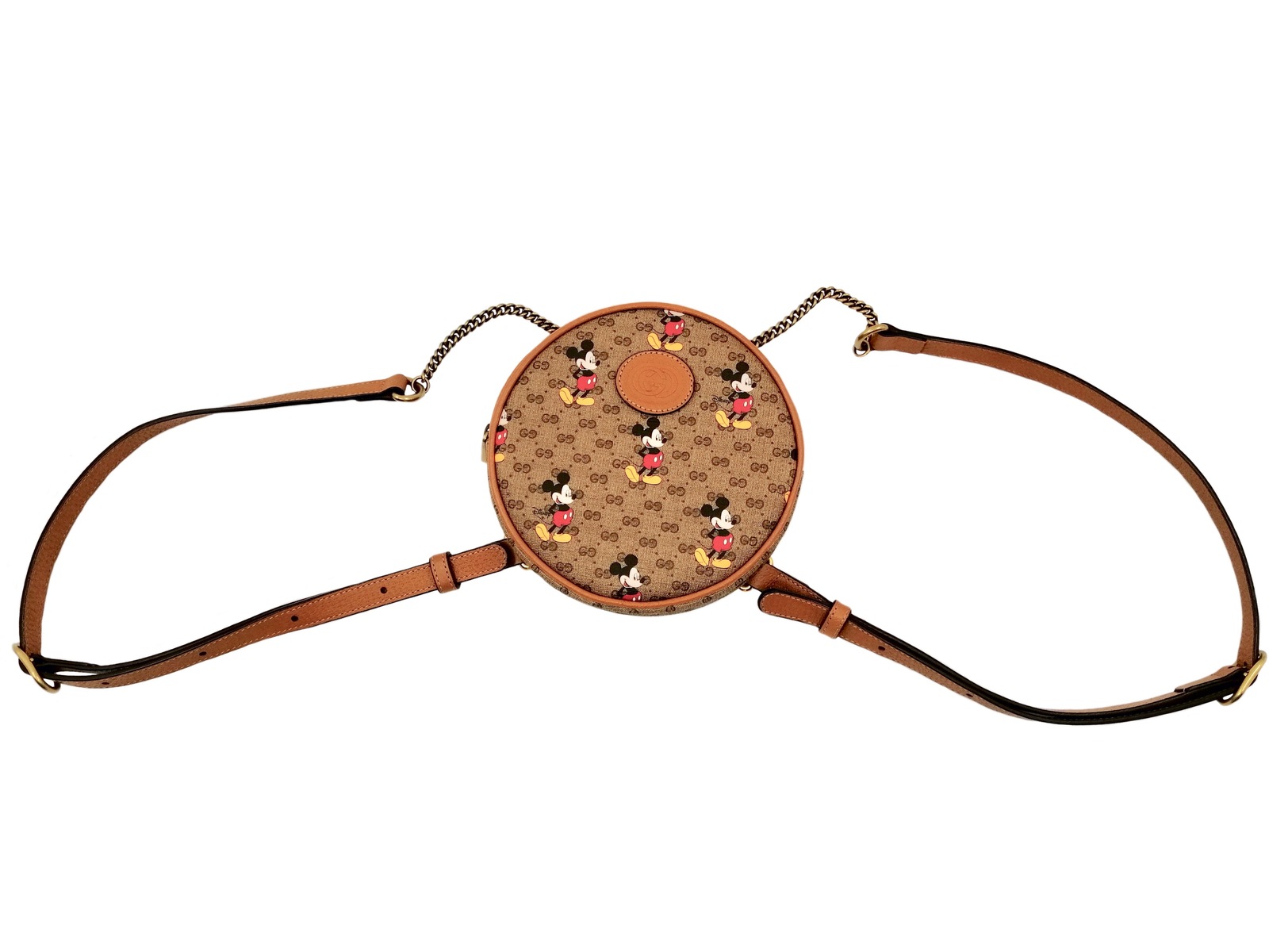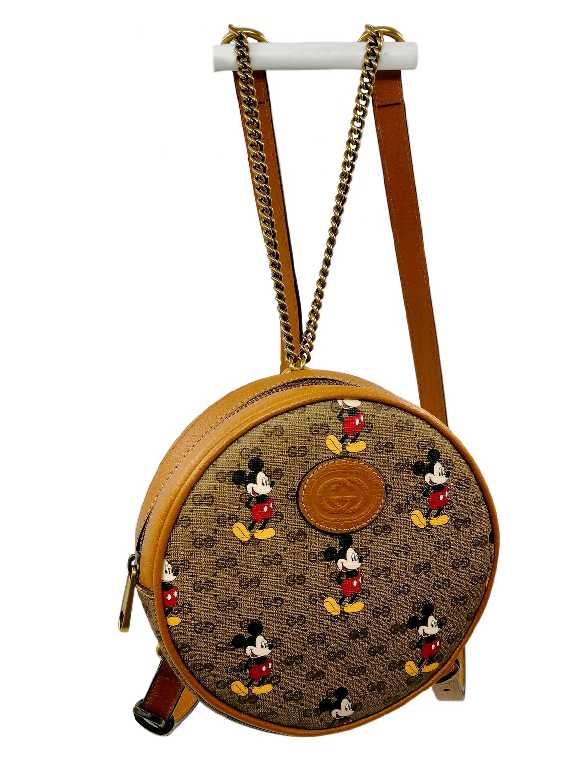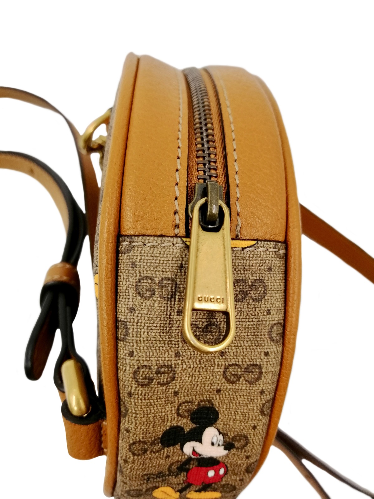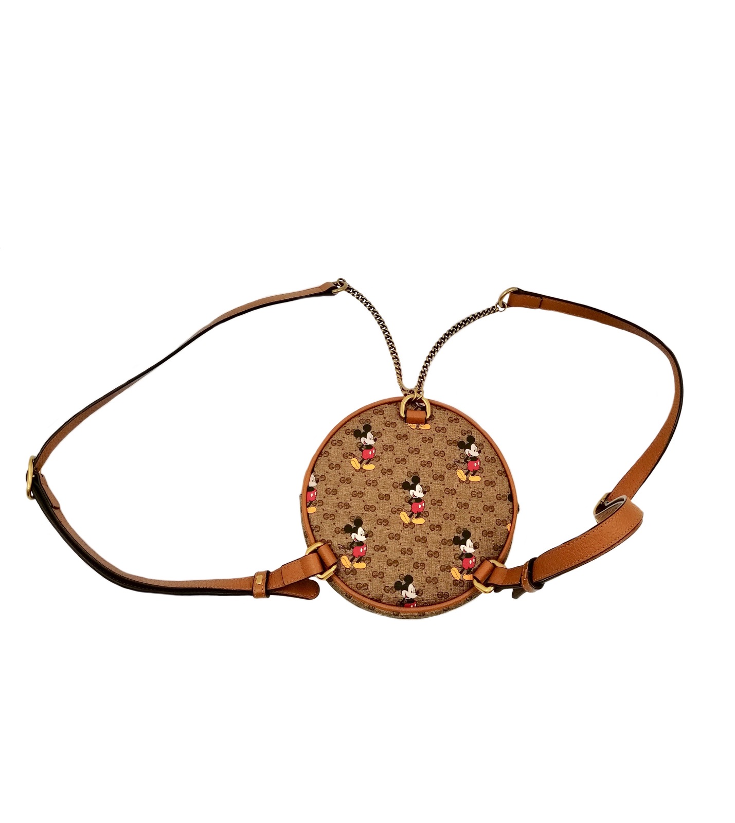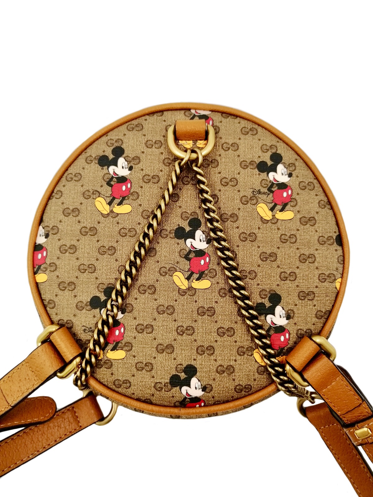 GUCCI Zainetto Gucci/Disney. 2020. Tela e pelle. Cm 16,00 x 16,00 x 4,00. Zainetto rotondo con zip, tela logata con Mickey Mouse, bretelle in pelle. Collezione 2020 di Alessandro Michele. Codice: 603730.534563. Made in Italy. Condizioni eccellenti pari a nuovo.