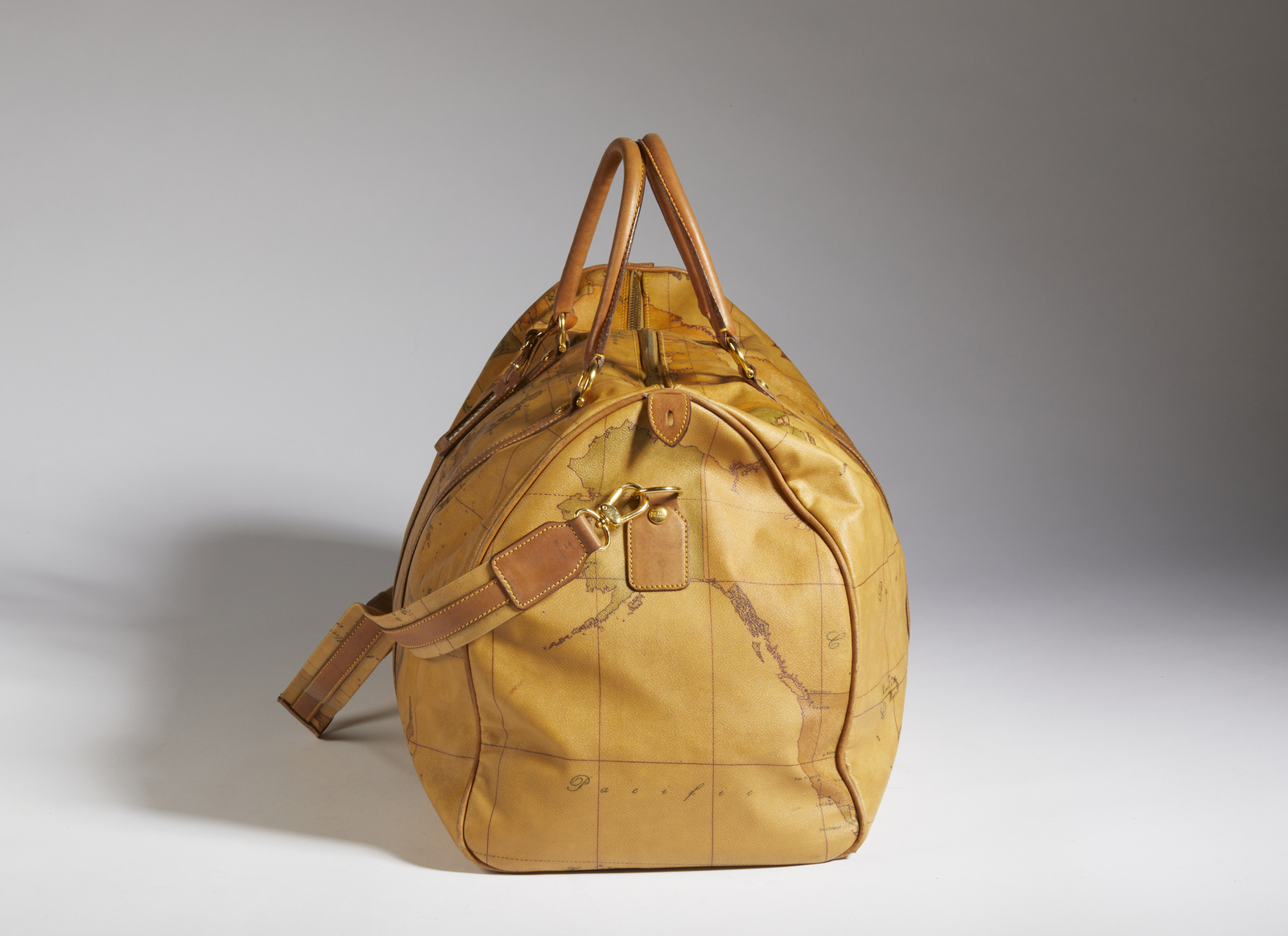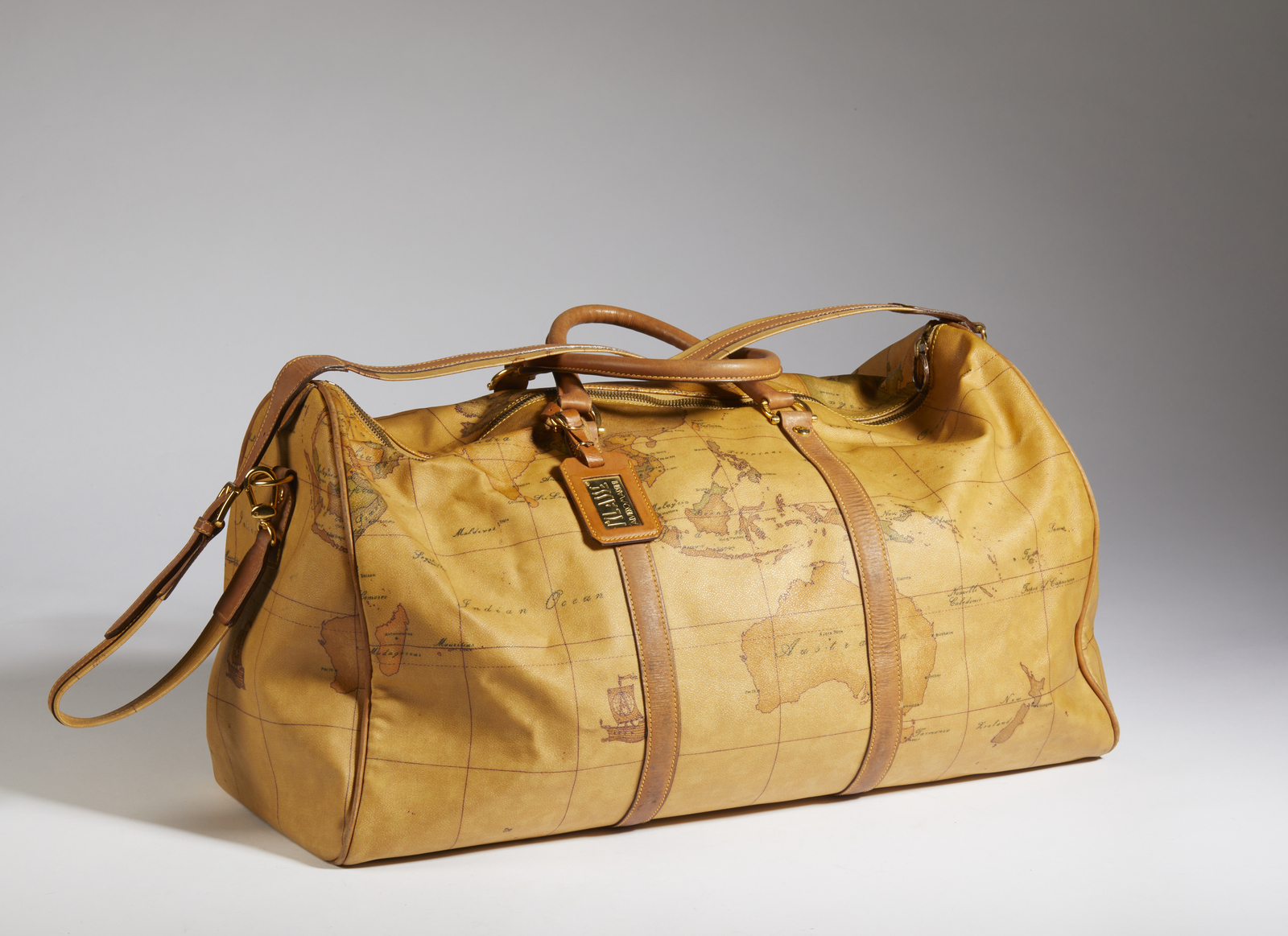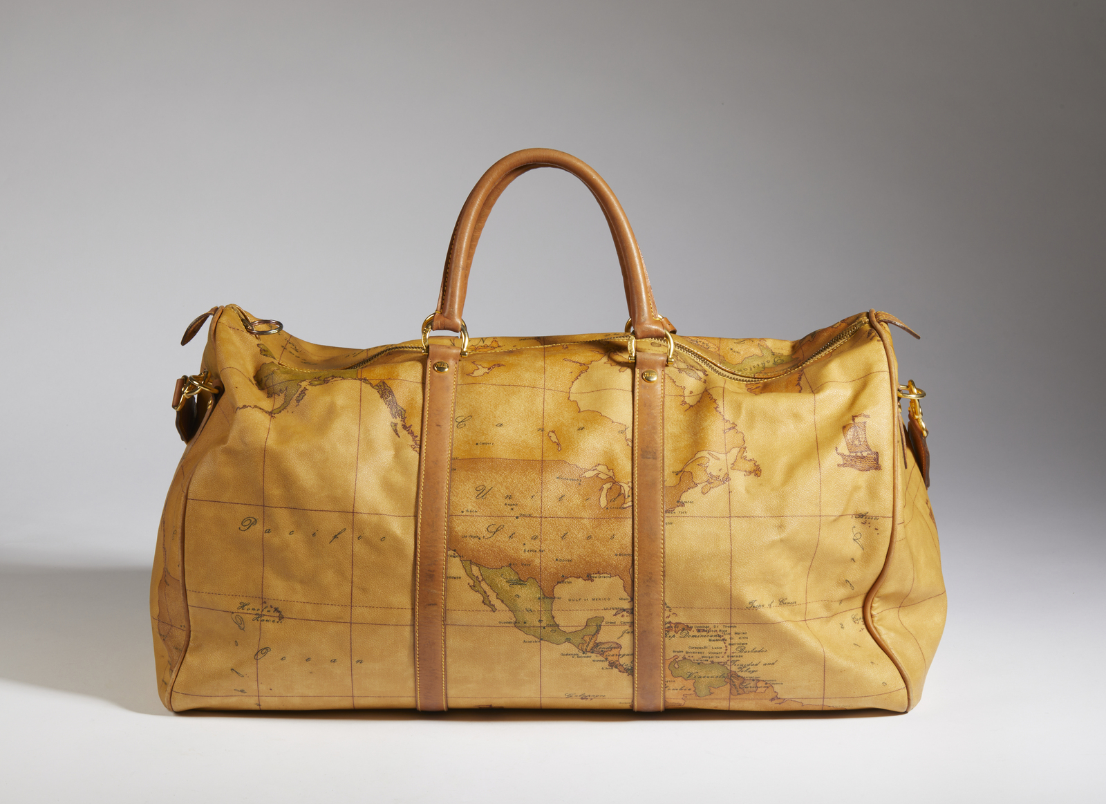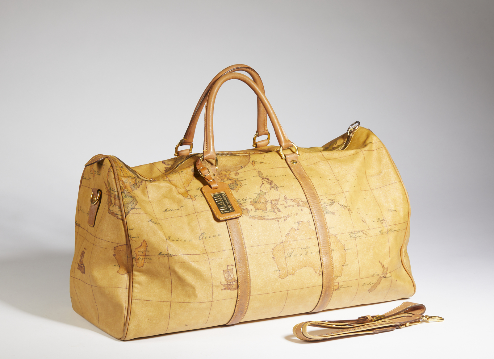 MARTINI ALVIERO Borsone da viaggio. Canvas. Cm 62,00 x 34,00 x 28,00. Borsone da viaggio Alviero Martini, fantasia classica a mappa emblema del brand, dettagli, manici, finiture e tracolla removibile in pelle a contrasto, all'interno etichetta presente.