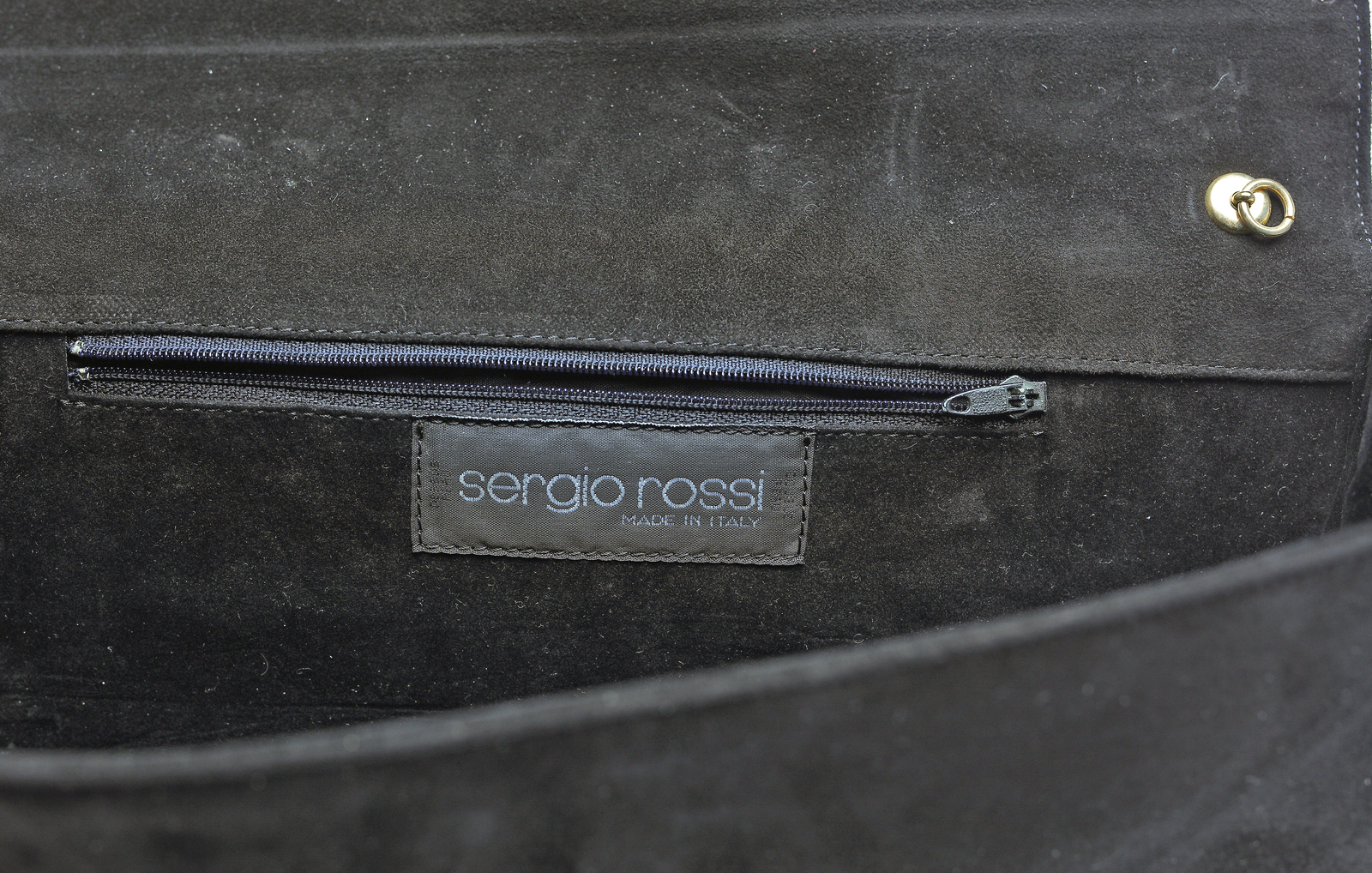 ROSSI SERGIO - Pochette scamosciata in color nero con ricami.