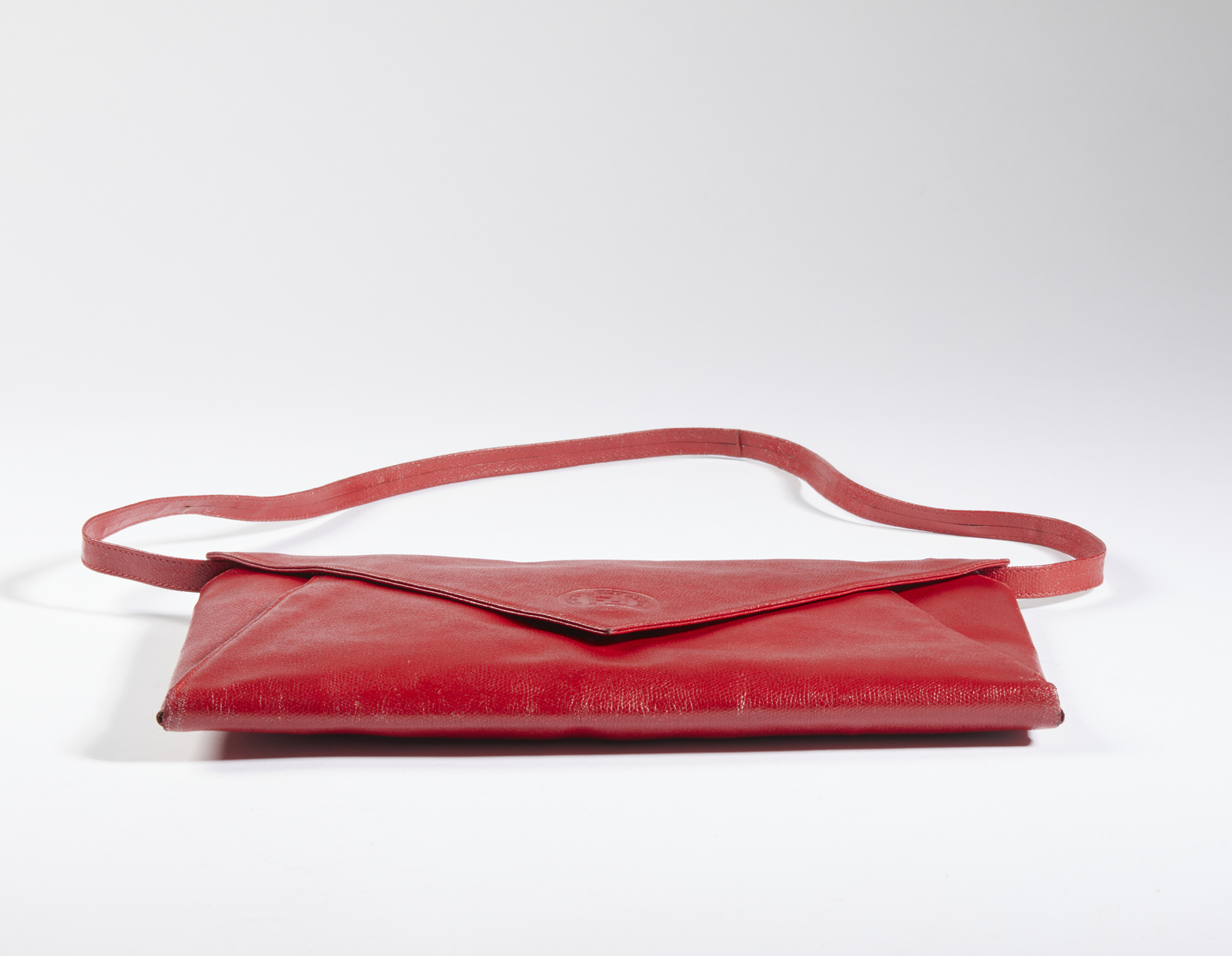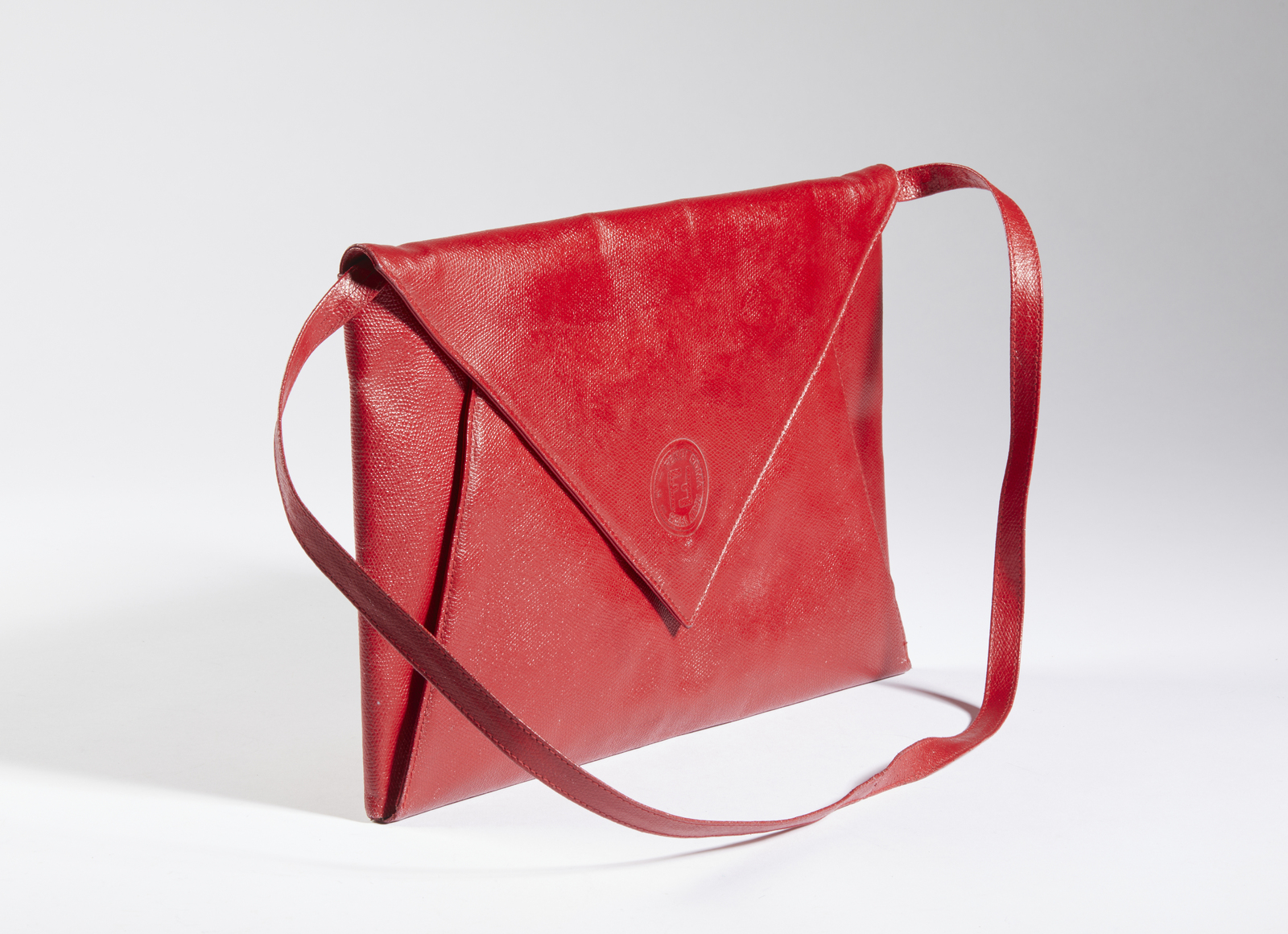 FENDI Borsetta in pelle rossa. Pelle. Cm 37,00 x 24,00 x 3,00. Borsetta in pelle rossa stampata effetto lucertola Fendi vintage, a forma di busta da lettera con tracollina. Interni in fodera logo e logo Fendi.