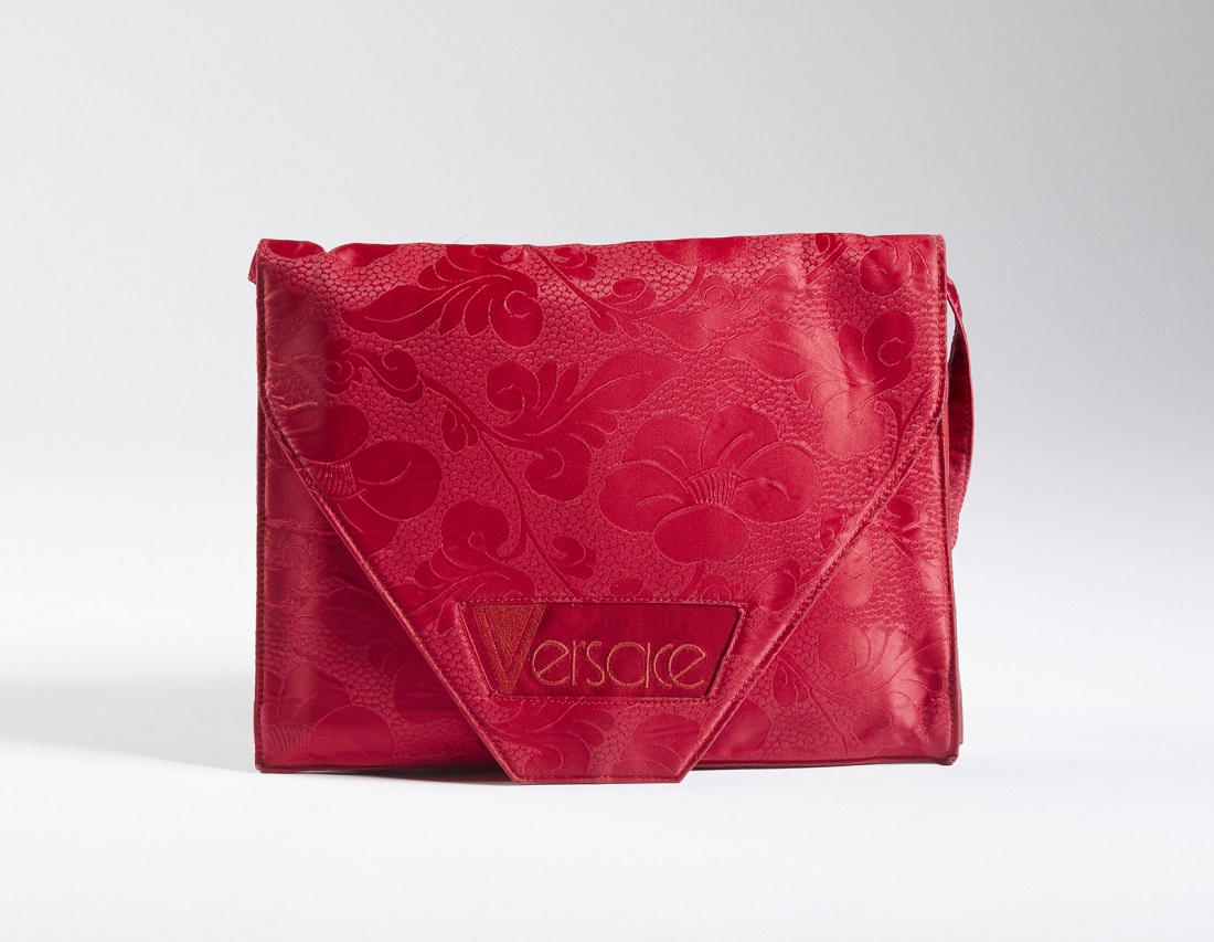 VERSACE GIANNI (1946 - 1997) - Borsetta in tessuto rosso devoré con tracollina.