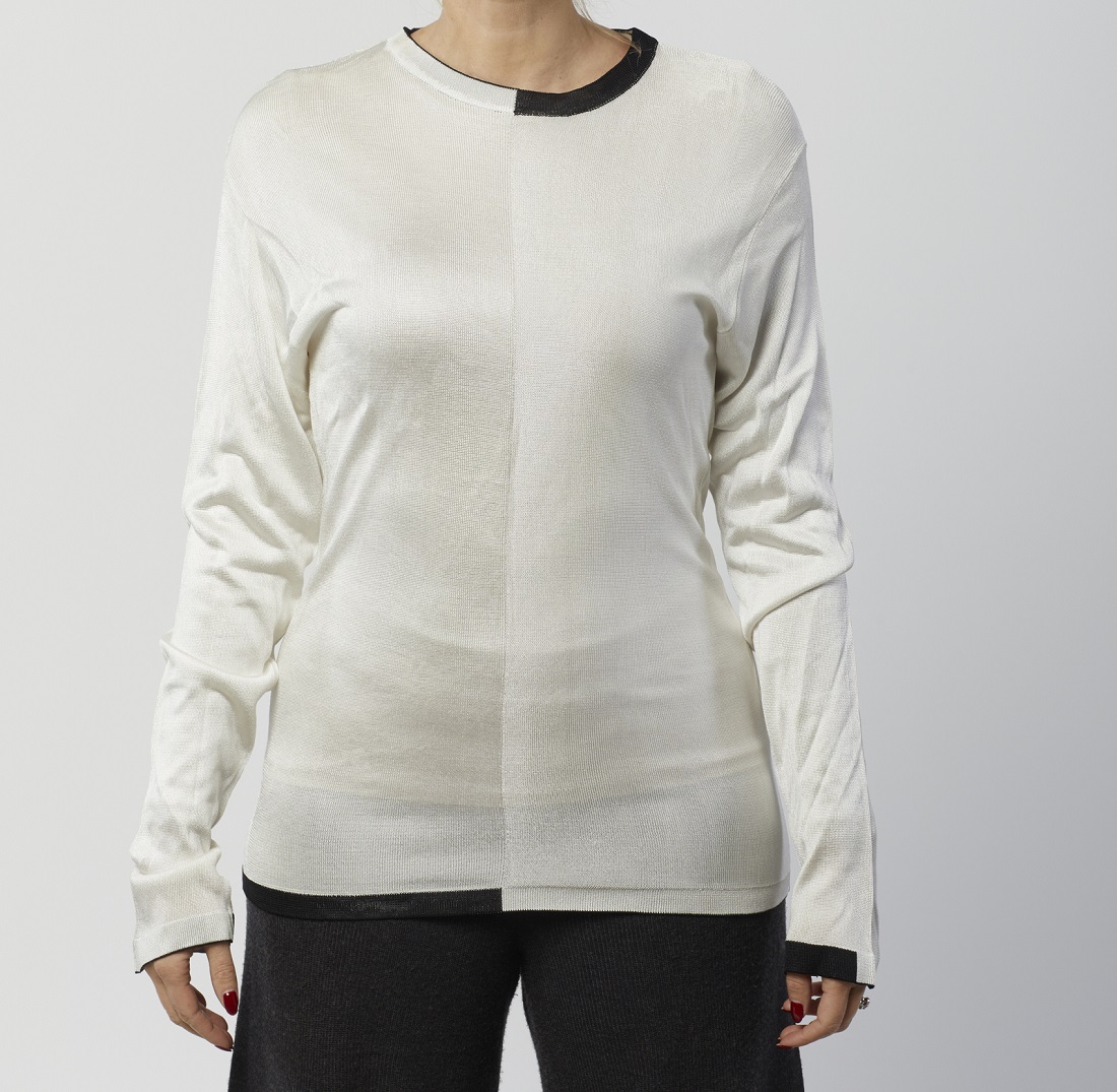 SCHON MILA - Maglia in viscosa bianca con profili bianchi e neri a contrasto.