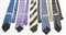 VERSACE GIANNI (1946 - 1997) Lotto composto da cinque cravatte,. Seta. . Lotto composto da 5 cravatte Gianni Versace vintage. Una cravatta in seta con fantasia Medusa e ramages nei toni del giallo oro su fondo geometrico nei toni del blu ed azzurro; una cravatta in seta a fantasia floreale e geometrica nei toni del lilla; una cravatta in seta a righe trasversali nei toni del bianco, grigio e nero, motivo a ramages e logo Medusa in giallo oro; una cravatta in seta a motivi di righe orizzontali, testa Medusa e ramages giallo oro su fondo blu; una cravatta in seta antracite con motivi geometrici nei toni del turchese, ocra e nero. Tutte le cravatte presentano la fodera in tessuto jacquard logo ed etichetta Gianni Versace al retro.