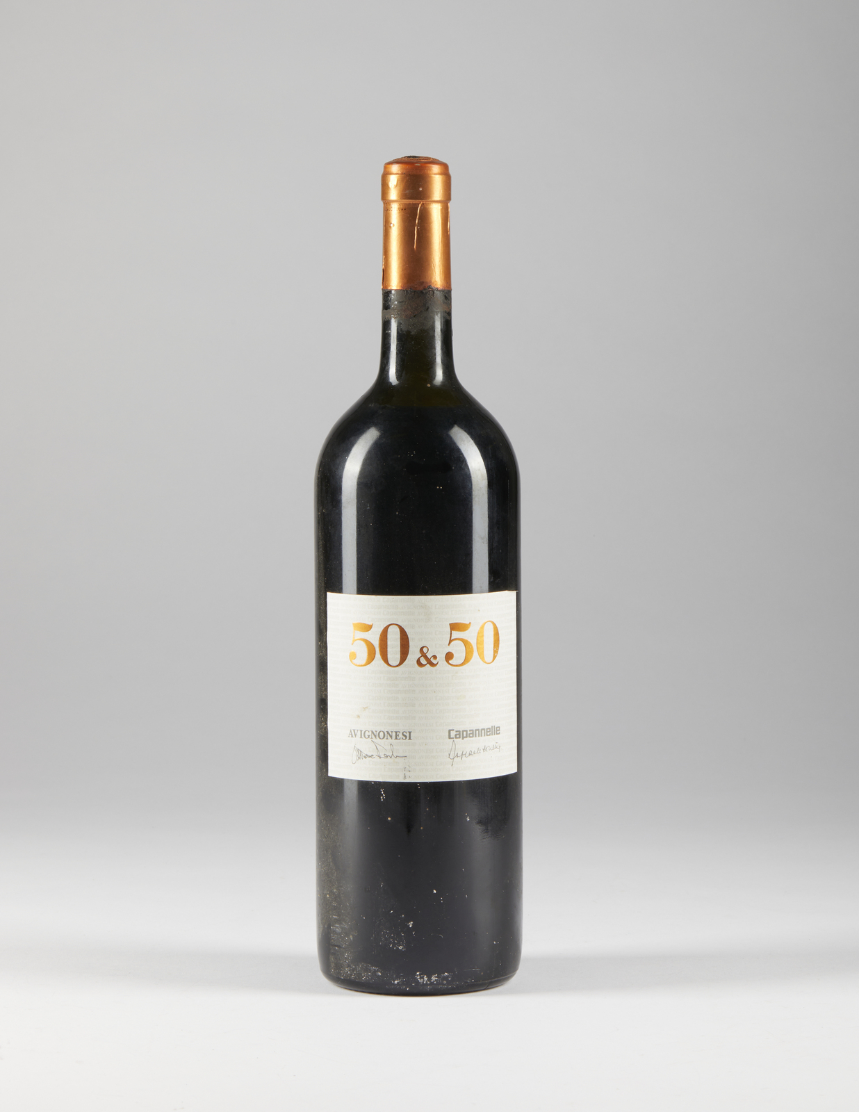 AVIGNONESI E CAPANNELLE Avignonesi - Capannelle 50&50. . . . 50&50 vino rosso. Eccezionale miscela di 50% di Sangiovese di Capannelle e 50% di Merlot di Avignonesi. Dall’amicizia che lega i proprietari di Avignonesi a Montepulciano e Capannelle in Chianti, arriva il ricercato vino 50&50. Anno 2010