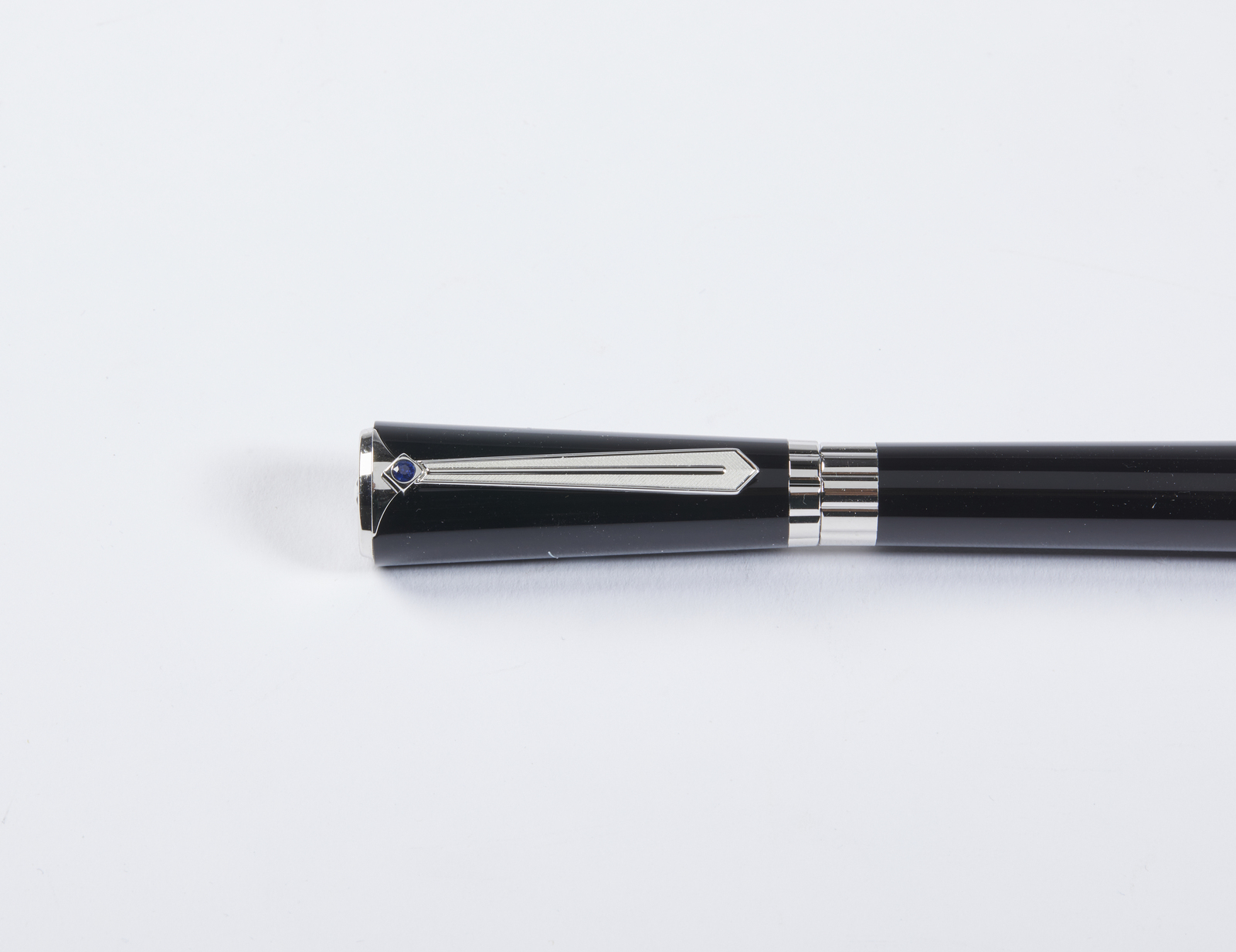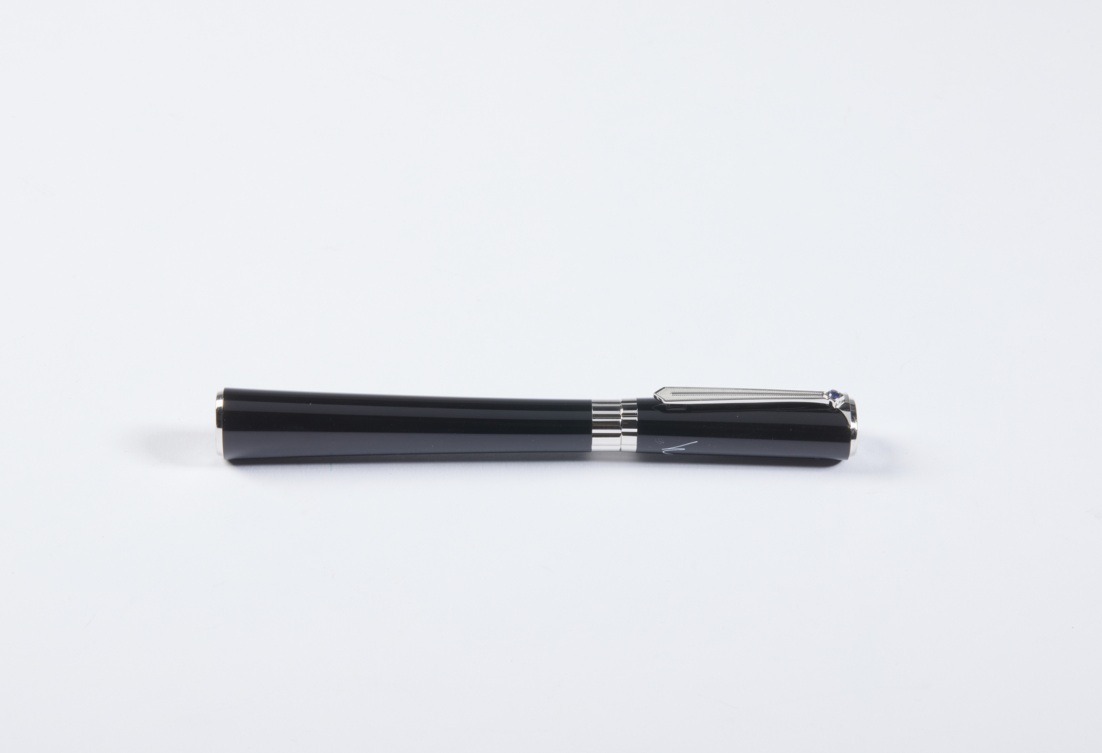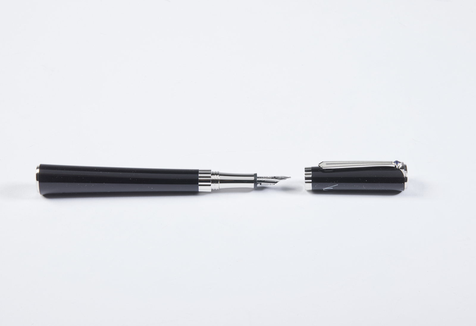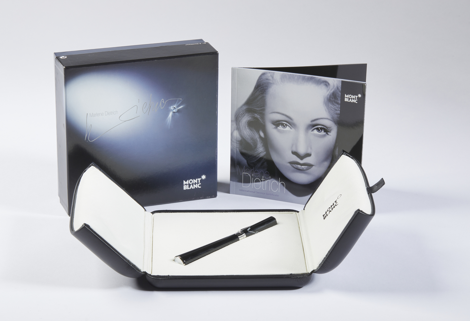 MONT BLANC Penna stilografica MontBlanc Marlene Dietrich Special Edition. Resina. . Penna stilografica MontBlanc in edizione limitata, realizzata in pregiata resina nera, presenta un prezioso zaffiro sulla clip, omaggio al film "l'Angelo Azzurro" e la firma dell'attrice sul cappuccio, pennino in oro 18kt, finitura rodio, che evoca con il foro intagliato a forma di cuore un famoso personaggio dell'attrice, che si proclamava "innamorata dalla testa ai piedi". La penna viene proposta in un'elegante scatola originale, sovrascatola e libretto.