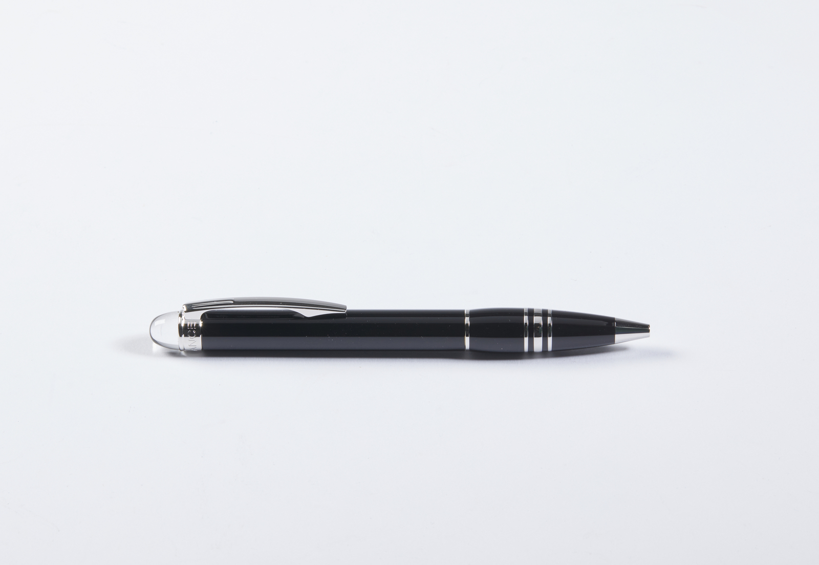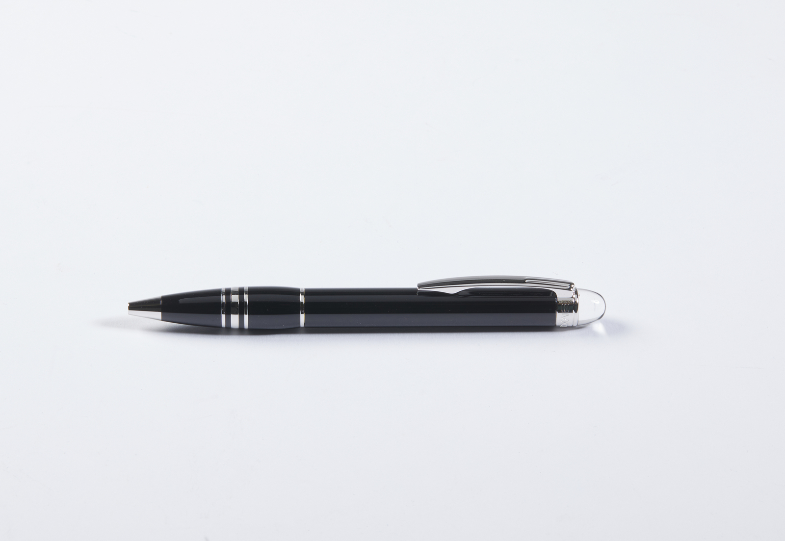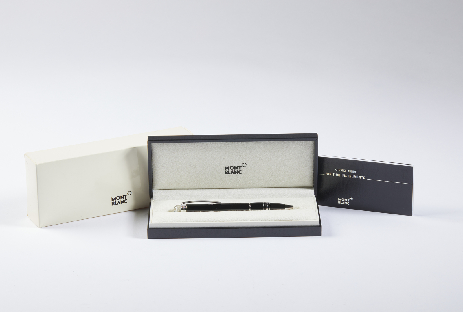 MONT BLANC Penna a sfera Starwalker. Resina. . Classica penna a sfera MontBlanc modello Starwlker in pregiata resina nera, finiture argentate, in elegante scatola originale e libretto.
