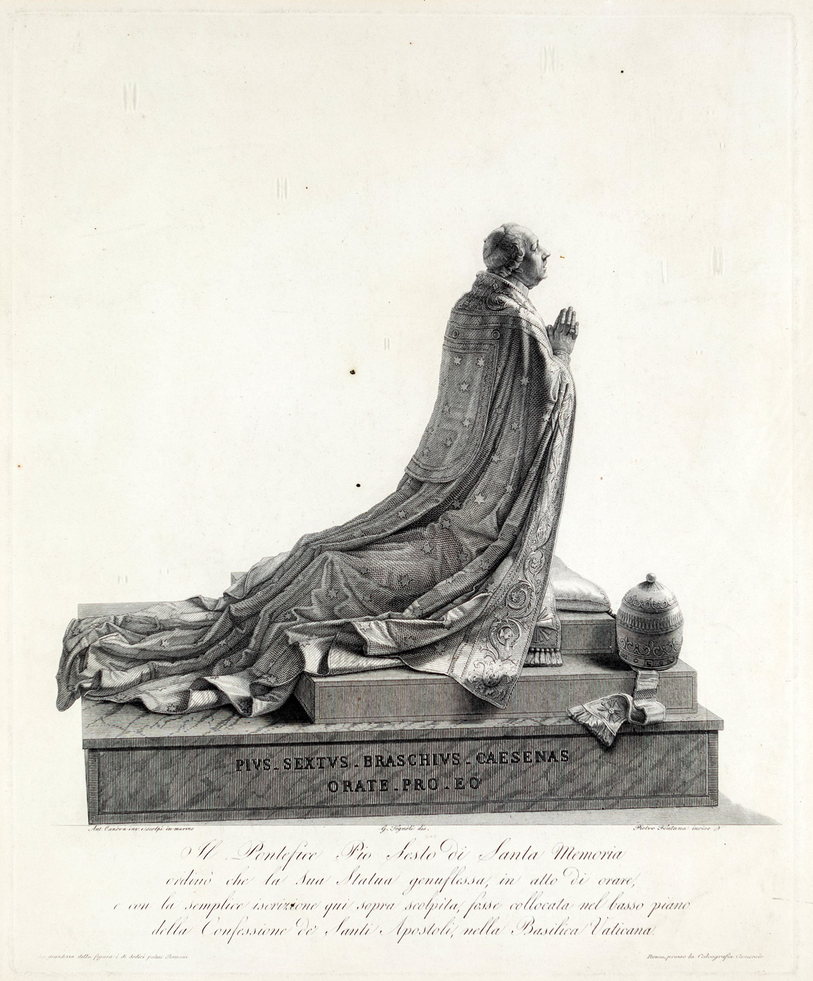Papa Pio VI in preghiera, scultura di Antonio Canova. Da un disegno di Giovanni Tognoli (1786 - 1862)