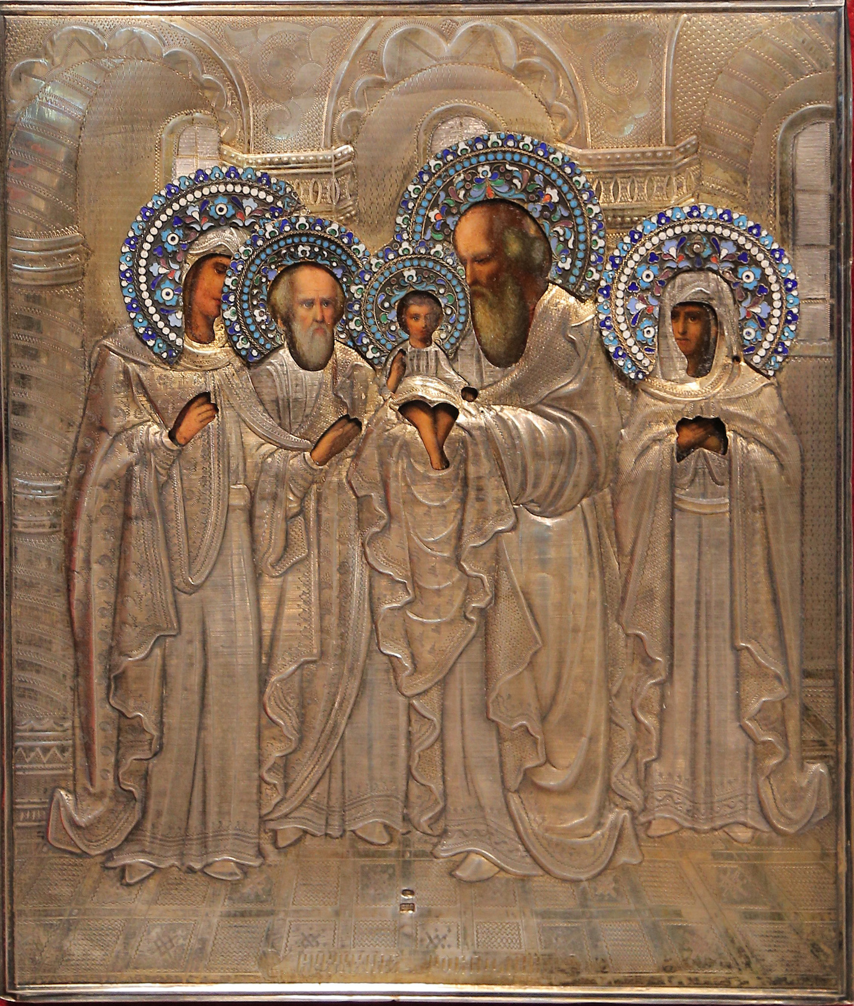 'Presentazione di Gesù al tempio' tempera all'uovo su tavola con riza in argento e smalti fine XIX secolo Mosca