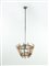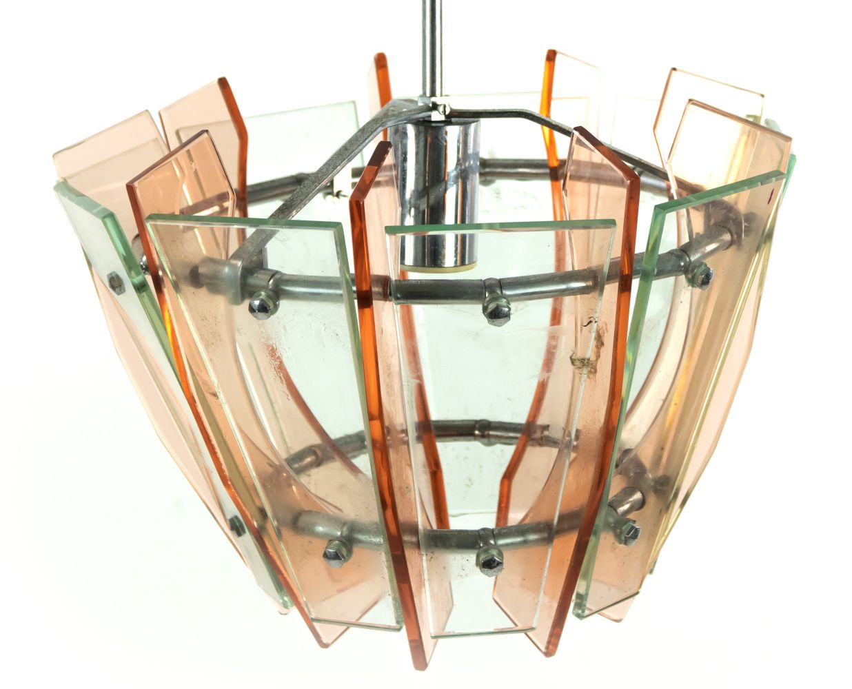 Lampadario vintage realizzato in vetro colorato verde chiaro e rosa.