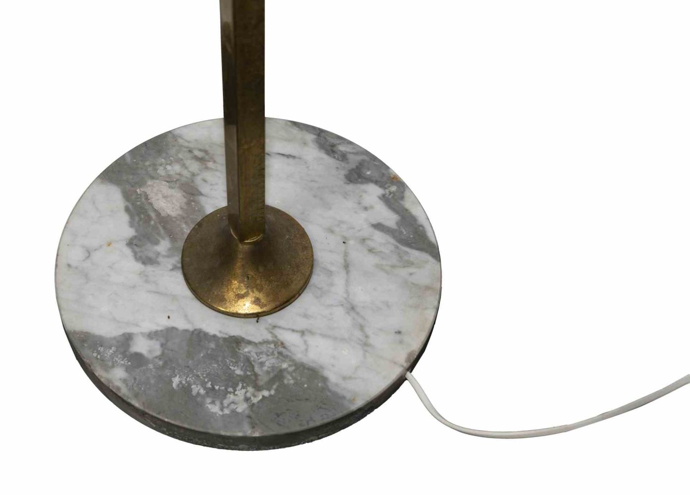 Lampada da terra in vetro di Murano, metallo, ottone e base in marmo di forma rotonda.