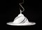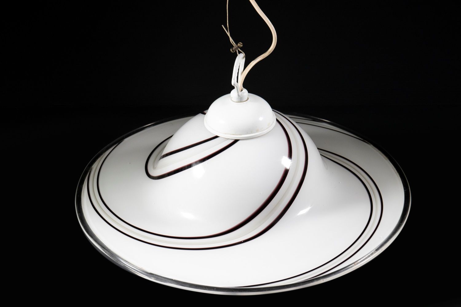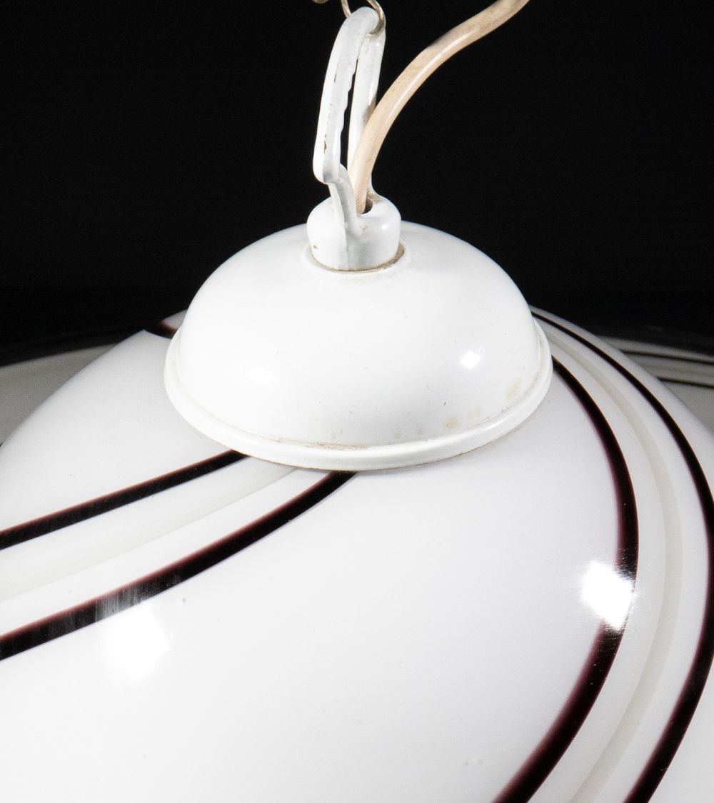 Lampadario vintage con paralume in vetro di Murano bianco e nero.