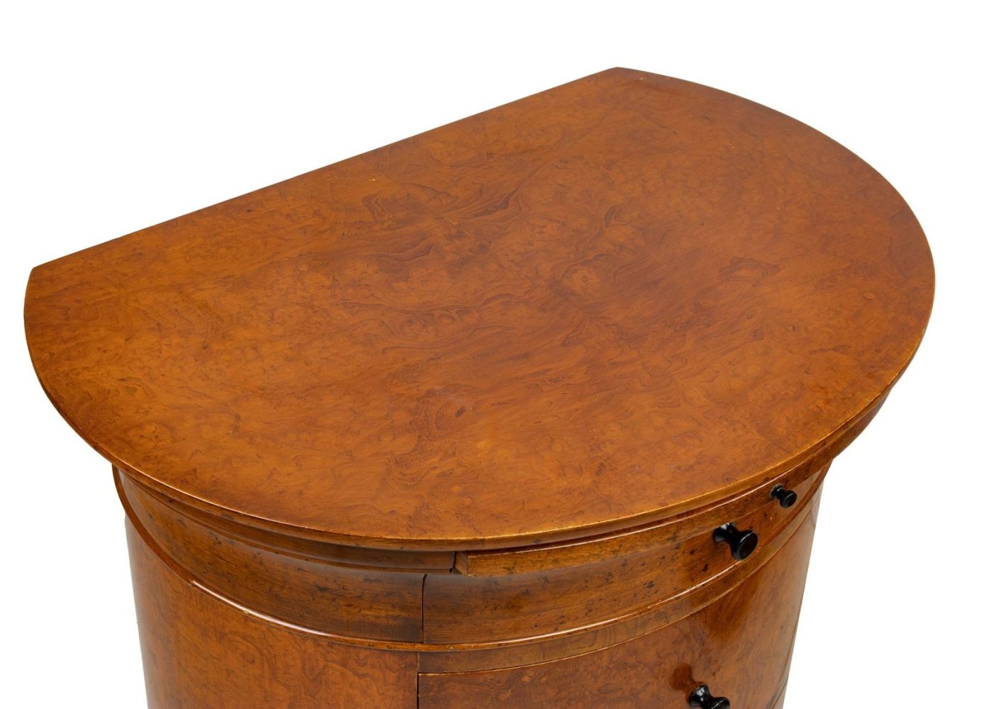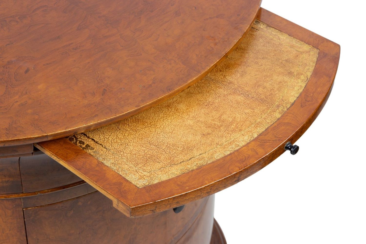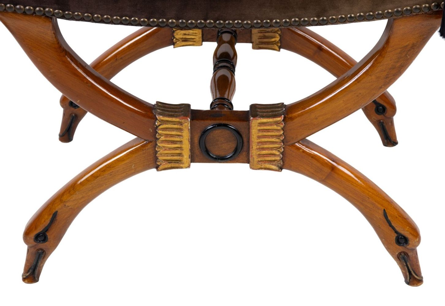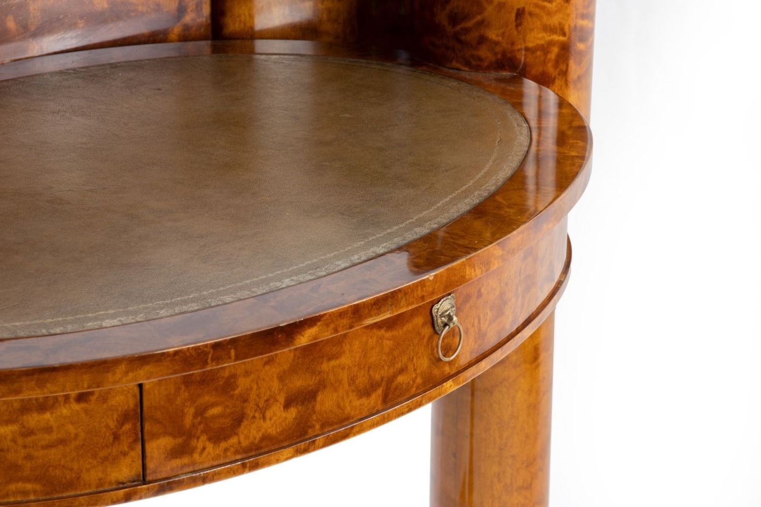 Un'elegante camera da letto Biedermaier, attribuita a Joseph Ulrich Danhauser. Noce, pelle, metallo brassa. In ottime condizioni e comprendente camera da letto (cm 110 x 230 x 183), scrivania (cm 60x42x60), sgabello, consolle (cm 85 x 45 x 109) e 2 comodini. Joseph Ulrich Danhauser ( 14 marzo 1780 a Vienna; † 9 gennaio 1829 a Vienna) fu un produttore di mobili sul Wieden, vicino a Vienna, durante il periodo Biedermeier. Dopo una formazione come scultore all'Accademia di Belle Arti, Joseph Ulrich Danhauser fondò nel 1804 l'"Etablissement for all objects of ameublements", dove offriva mobili, tendaggi, tappezzerie, tappeti e articoli in bronzo e vetro. Il Palais Czernin (occasionalmente chiamato anche Palais Czernin-Althan) nella Favoritenstrasse gli servì come stabilimento di produzione, la maggior parte del cui giardino fu venduta come terreno edificabile. Nel nostro laboratorio, dove già intorno al 1808 lavoravano più di 100 persone, si producevano Nel nostro laboratorio, dove già intorno al 1808 lavoravano 100 persone, venivano realizzati su disegno mobili, lampade, telai per pipe, fucili e stecche da biliardo, telai da ricamo, schermi per stufe, pulpiti e altari. La pasta da lui sviluppata, con la quale era in grado di imitare il bronzo come decorazione di mobili e altri arredi, ebbe molto successo. Nel 1812, la Hofkammer gli concesse il privilegio esclusivo di produrli. Vista la grande richiesta dei suoi prodotti, che offrivano una soluzione totale per la progettazione dello spazio abitativo, furono aperte filiali a Graz e Budapest. Inoltre, i clienti potevano scegliere gli arredi per i loro appartamenti o case dai cataloghi. Tra gli indirizzi più importanti che vennero arredati con i suoi prodotti vi furono il Palais Archduke Albrecht (l'attuale Albertina), il Weilburg a Baden, il Palazzo Laxenburg vicino a Vienna, il Geymüllerschlössel a Vienna e parti del Castello di Graz. Dopo la morte di Josef Ulrich Danhauser, la fabbrica fu portata avanti dalla vedova di Danhauser, che andò in bancarotta nel 1834. La fabbrica fu poi rilevata dal figlio Franz, che fallì nel 1841. I locali della fabbrica furono in seguito utilizzati dall'Ospedale Wiedner. Ospedale Wiedner. I mobili da salotto realizzati da Danhauser sono esposti nella mostra permanente del MAK di Vienna. La Biblioteca e la Collezione di opere su carta del MAK possiedono l'intero patrimonio di disegni della fabbrica di mobili (circa 2.500 fogli), che sono stati digitalizzati nel 2008 e registrati in un database.