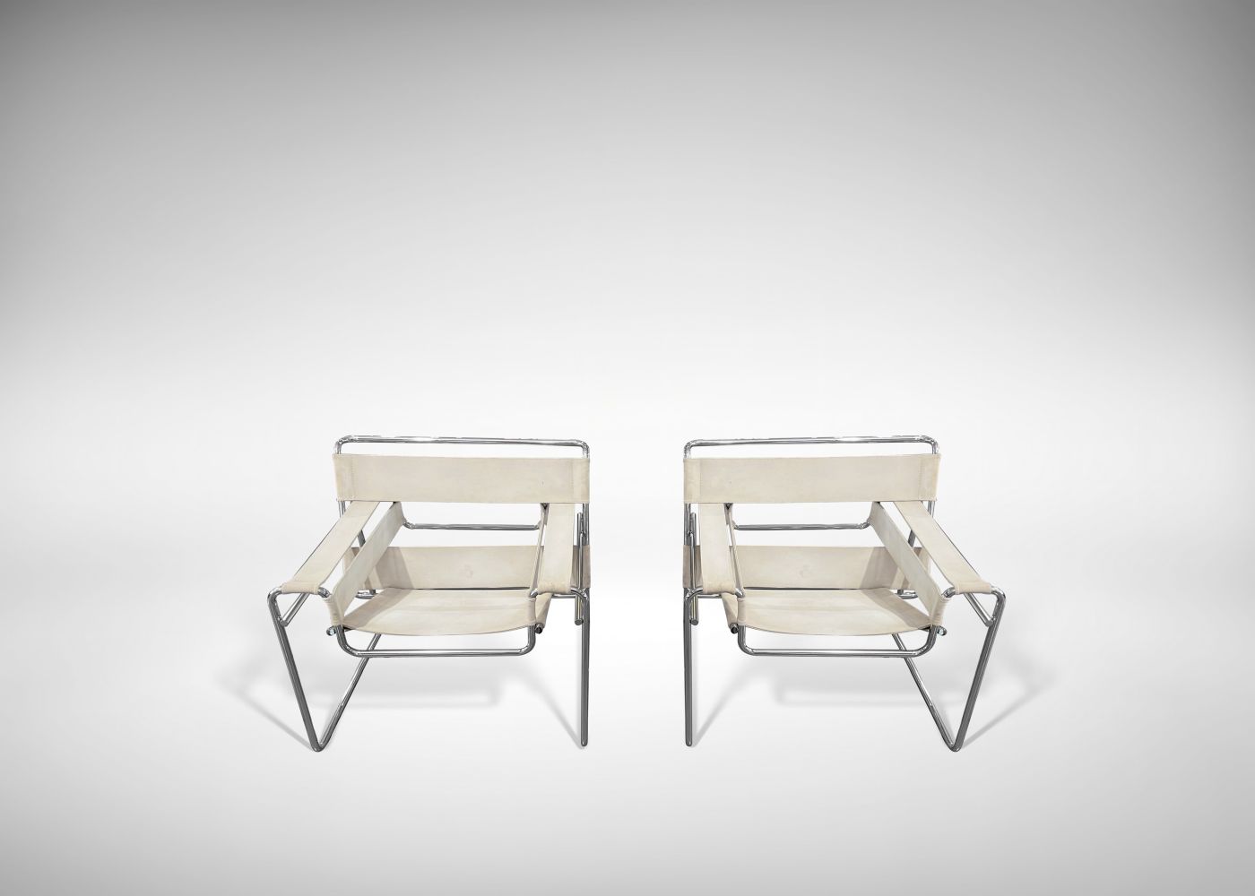 MARCEL BREUER - KNOLL INTERNATIONAL Pecs, 1902 - New York, 1981 Sedie vintage Wassily modello B3 per Gavina Anni '70 del XX secolo 73 x 78 x 68 cm