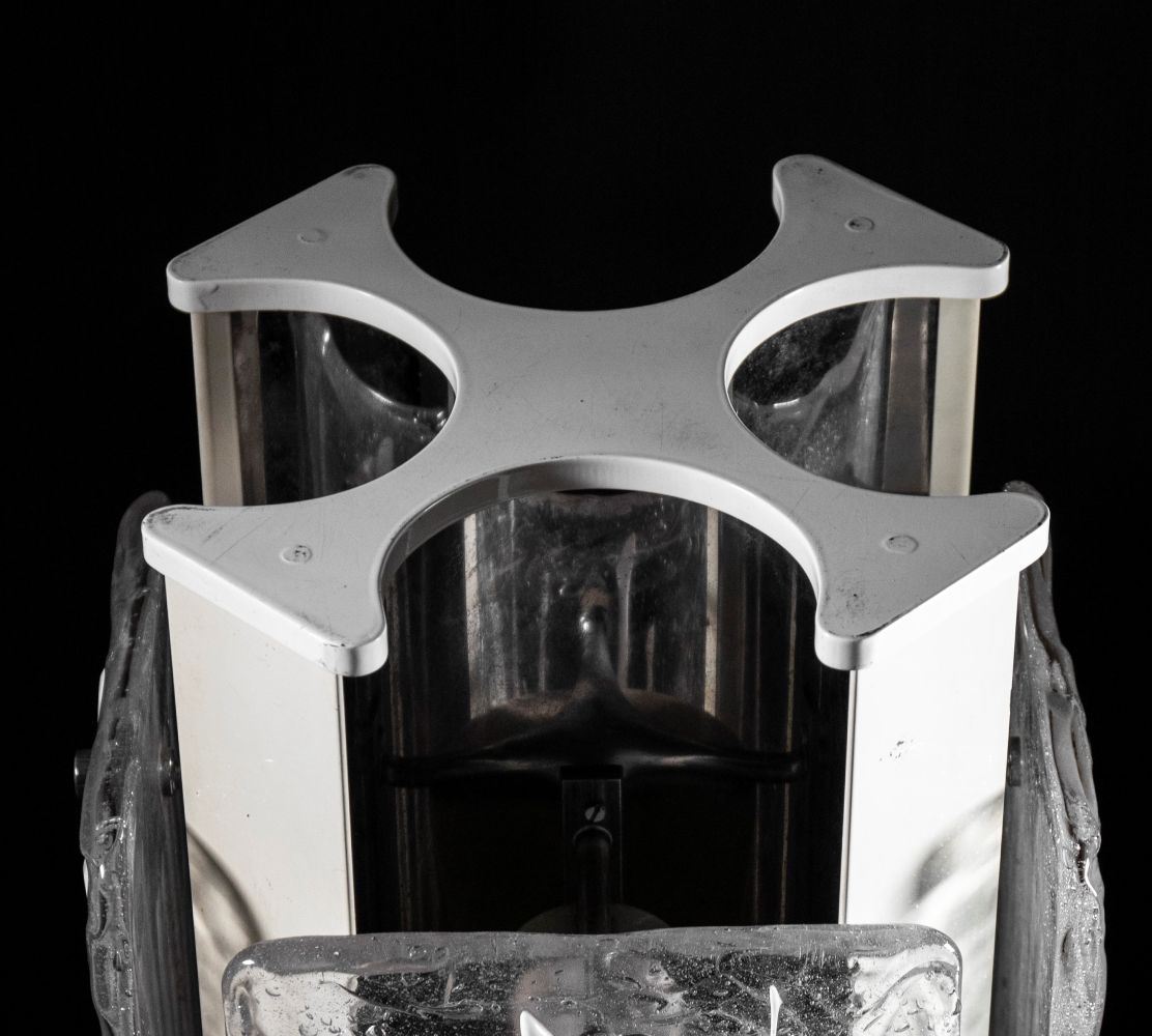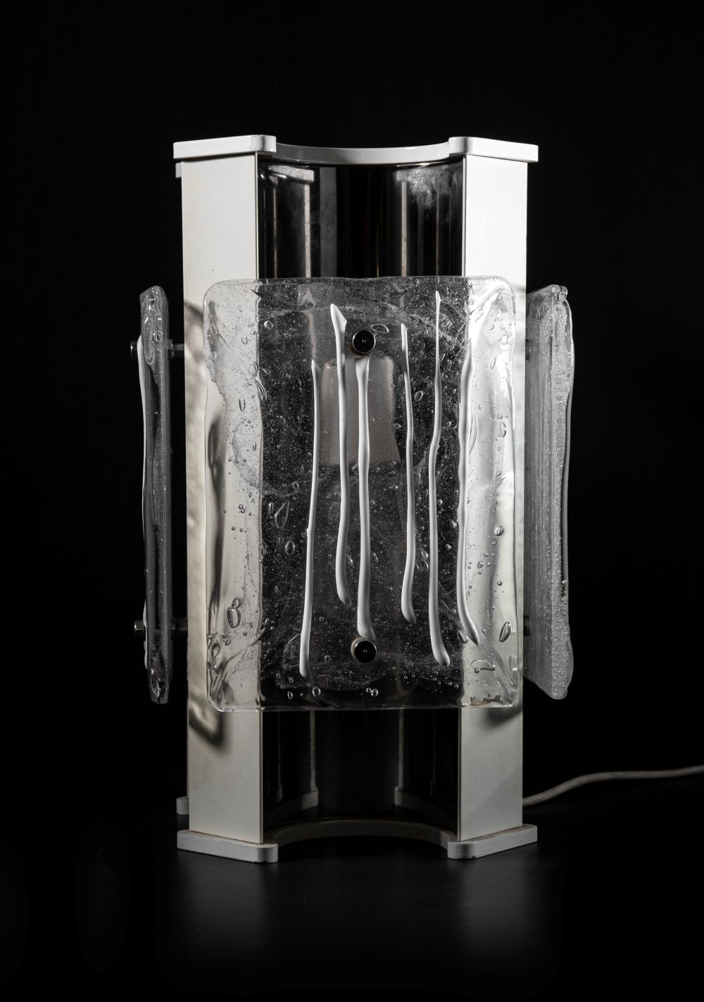 Una lampada vintage realizzata in vetro di Murano con un corpo in plastica al centro.