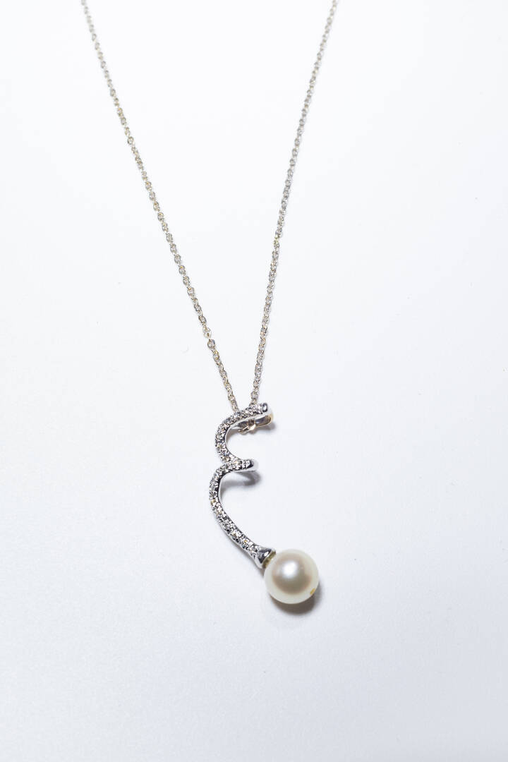 in oro bianco con perla giapponese del diam mm 8 ca e diamanti taglio brillante per totali ct 0,10 ca.