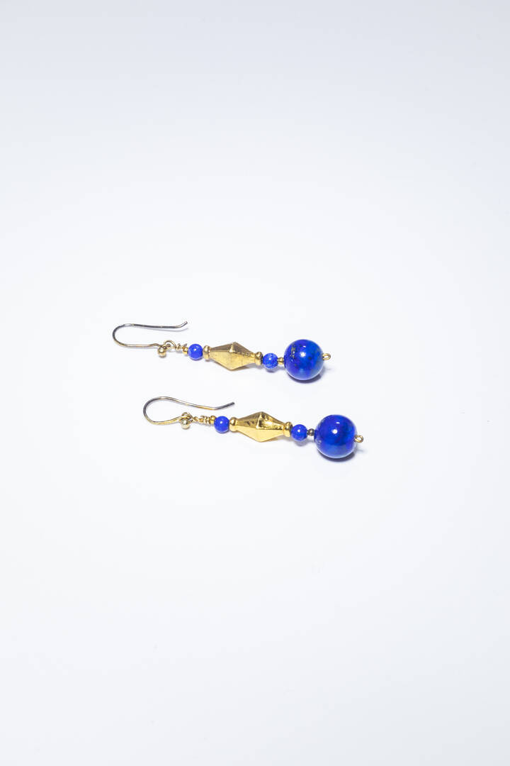 in argento dorato con sfere di lapislazzuli del diam. di mm 10 ca.