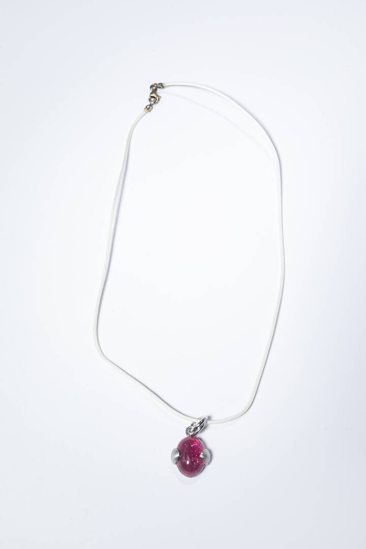 in oro bianco con tormalina rosa cabochon, firmato "Le-Gi".