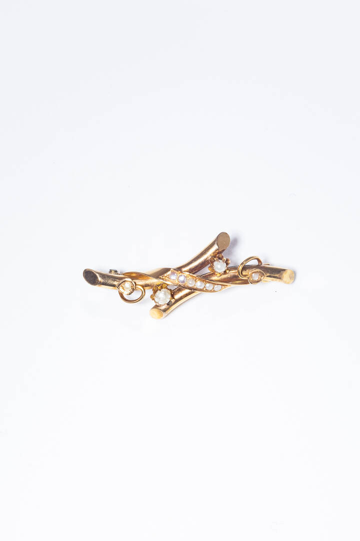 in oro rosa a bassa caratura, a canna vuota, XIX secolo, con perline.