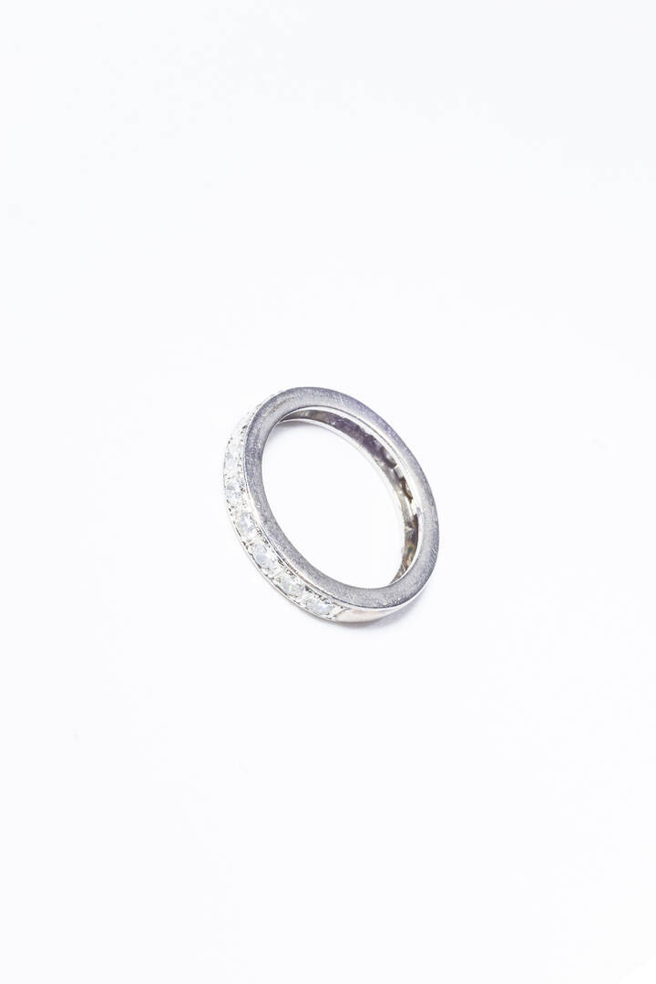 in oro bianco, mezza fede, con quattordici diamanti taglio brillante per totali ct 0,50 ca.
