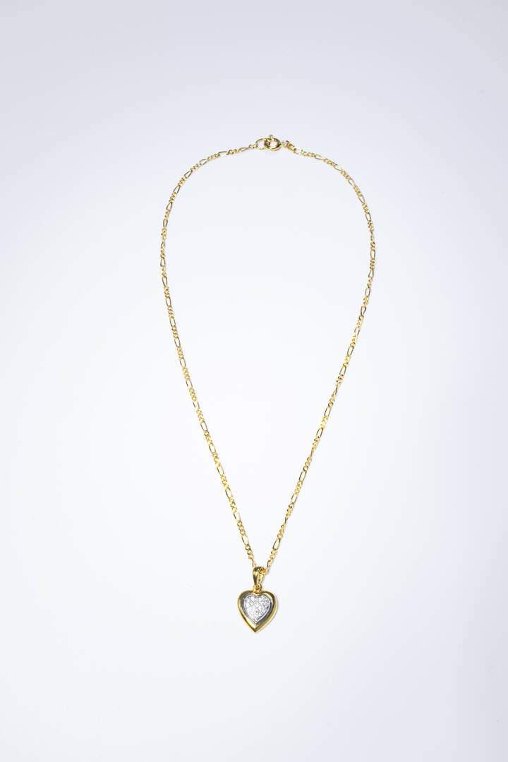in oro giallo con ciondolo in oro bianco a forma di cuore con pavé di diamanti taglio brillante per totali ct 0,20 ca.