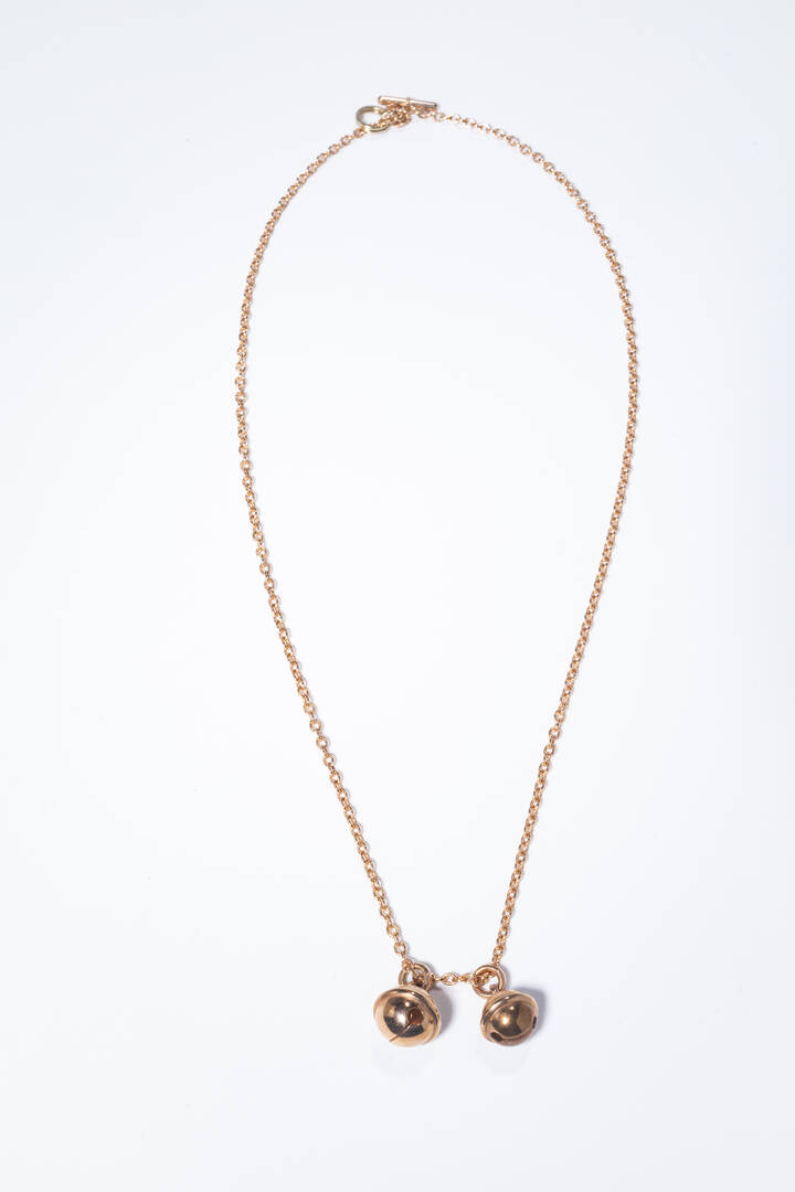 Catena con ciondoli in oro rosa 9 Kt, firmati "Pomellato" a forma di campanelli con scritta "Non ti perdere", linea "Dodo".