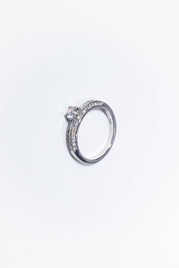 in oro bianco con solitario centrale di ct 0,33 ca e diamanti taglio brillante per totali ct 0,45 ca.