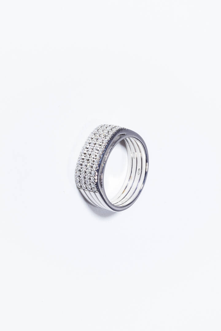 in oro bianco, sommità piatta con quattro file di diamanti taglio brillante per totali ct 0,40 ca.