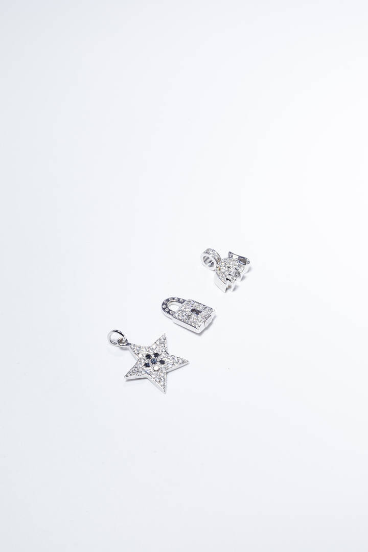 in oro bianco a forma di elefante, stella e lucchetto, con diamanti taglio brillante di colore bianco e di colore nero per totali ct 1,63 ca.