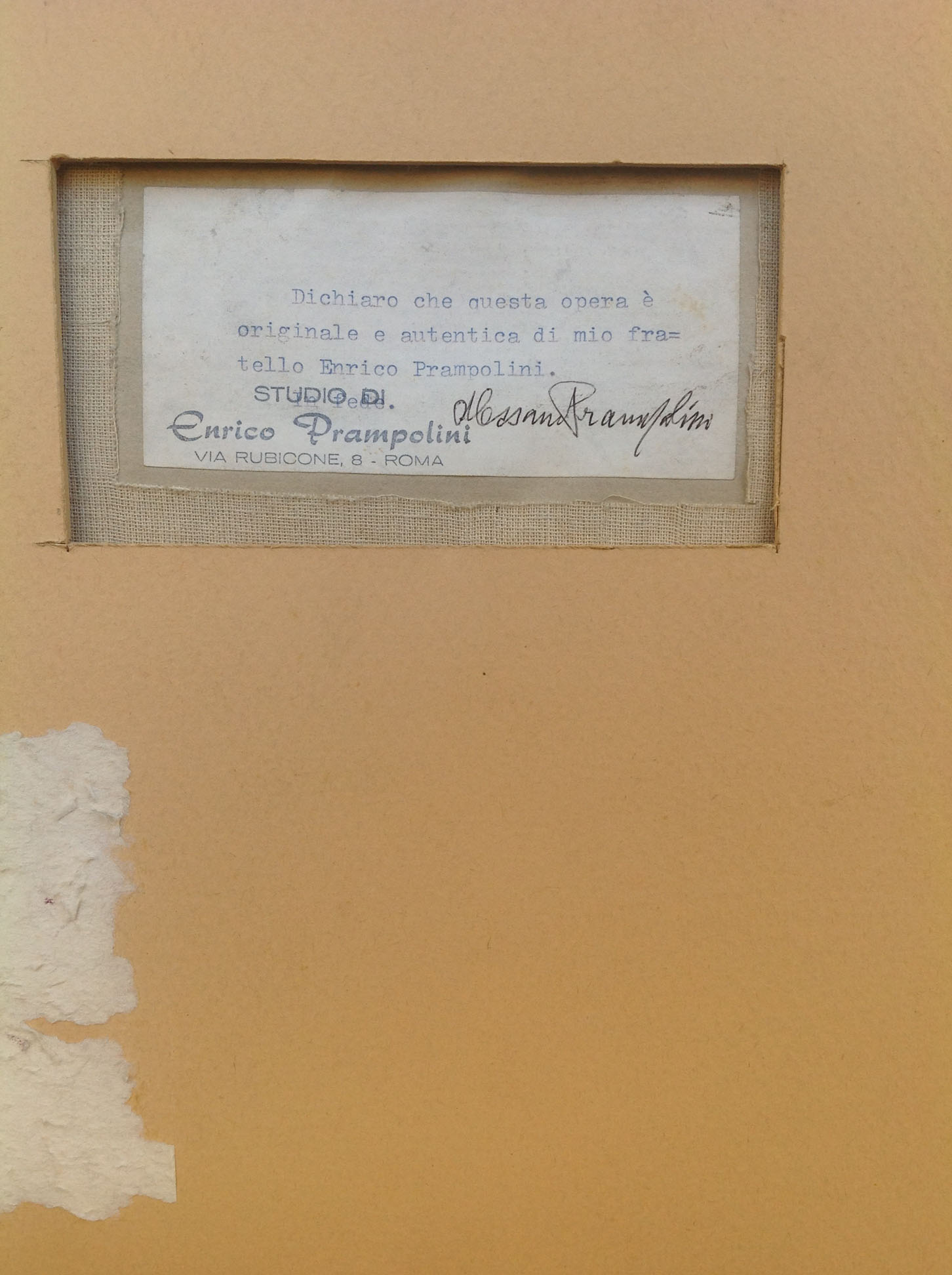 Exhibited: Omaggio a Enrico Prampolini, Galleria D' Arte Palazzo Vecchio, Florence