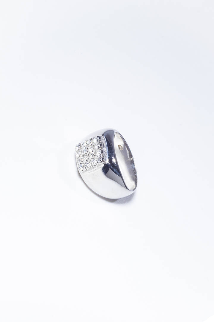 in oro bianco, sommità con inserto rettangolare con diamanti taglio 8/8 per totali ct 0,16 ca.