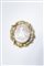 in metallo dorato, XIX secolo, con al centro grande cammeo inciso con Venere che trattiene la faretra di Amore. Decori a tralcio di vite. Al retro reca contenitore portacapelli o foto con vetro.