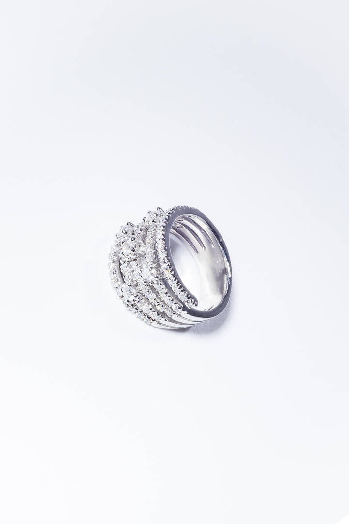 in oro bianco, sommità a cinque fili con diamanti taglio brillante per totali ct 1,44 ca