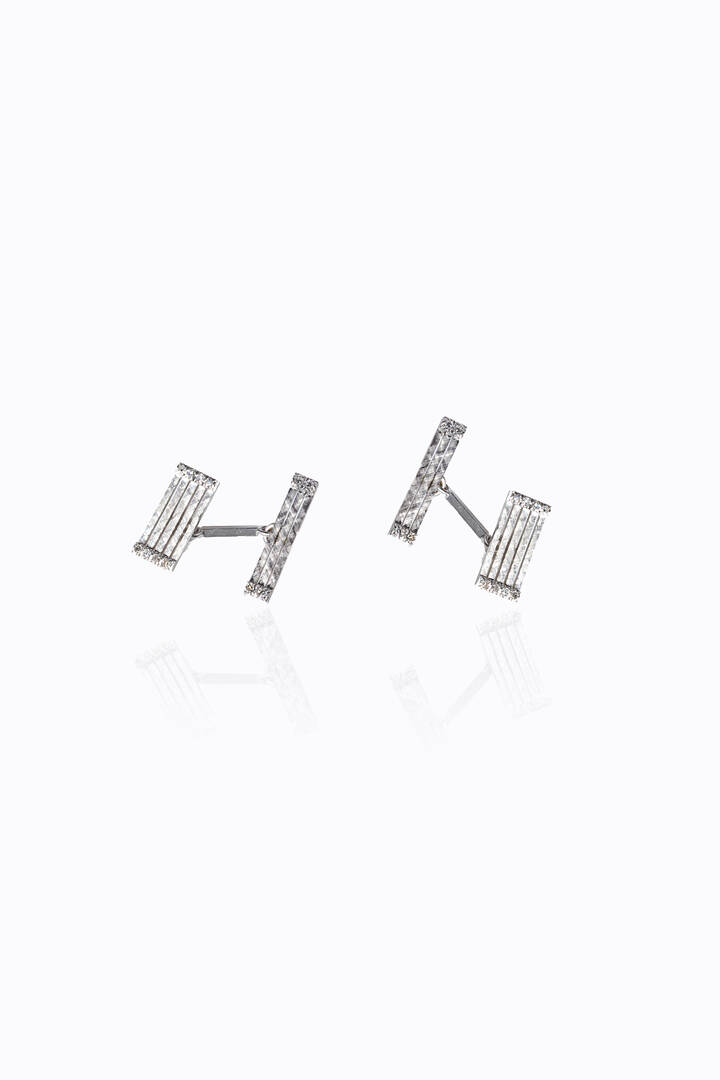 in oro bianco lucido e satinato, a barretta, con diamanti taglio 8/8 per totali ct 0,20 ca.