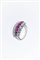 in oro bianco, sommità con tre fasce: una in rubini taglio rotondo per totali ct 1,50 ca e due in diamanti taglio brillante per totali ct 1,50 ca, probabile colore G-H, purezza IF-VVS.