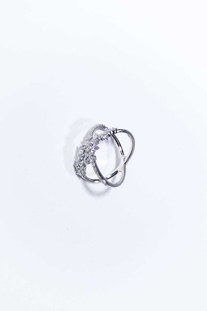 in oro bianco, sommità ad intreccio con diamanti taglio brillante per totali ct 0,84 ca, probabile colore G-H, purezza IF-VVS.