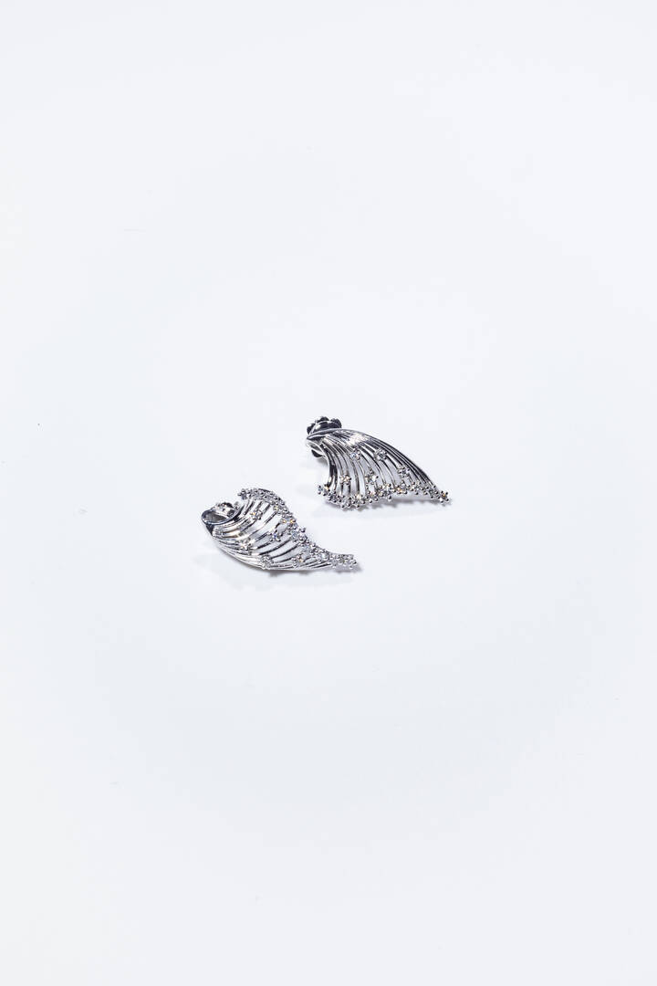 in oro bianco, a forma di volute, con diamanti taglio brillante per totali ct 0,44 ca, probabile colore G-H, purezza IF-VVS.