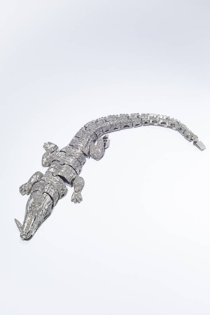 Bracciale in argento 925/1000, firmato "Palladino", a forma di coccodrillo con corpo satinato e composto da segmenti mobili.