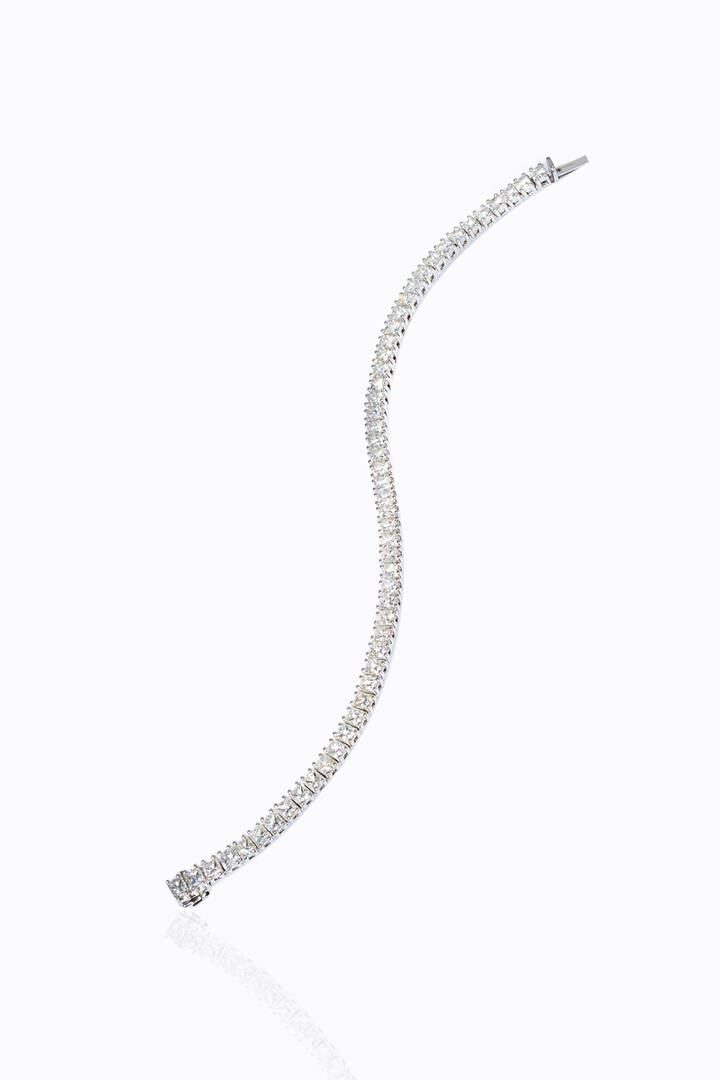 in oro bianco, modello tennis, con diamanti taglio carré per totali ct 8,0 ca.